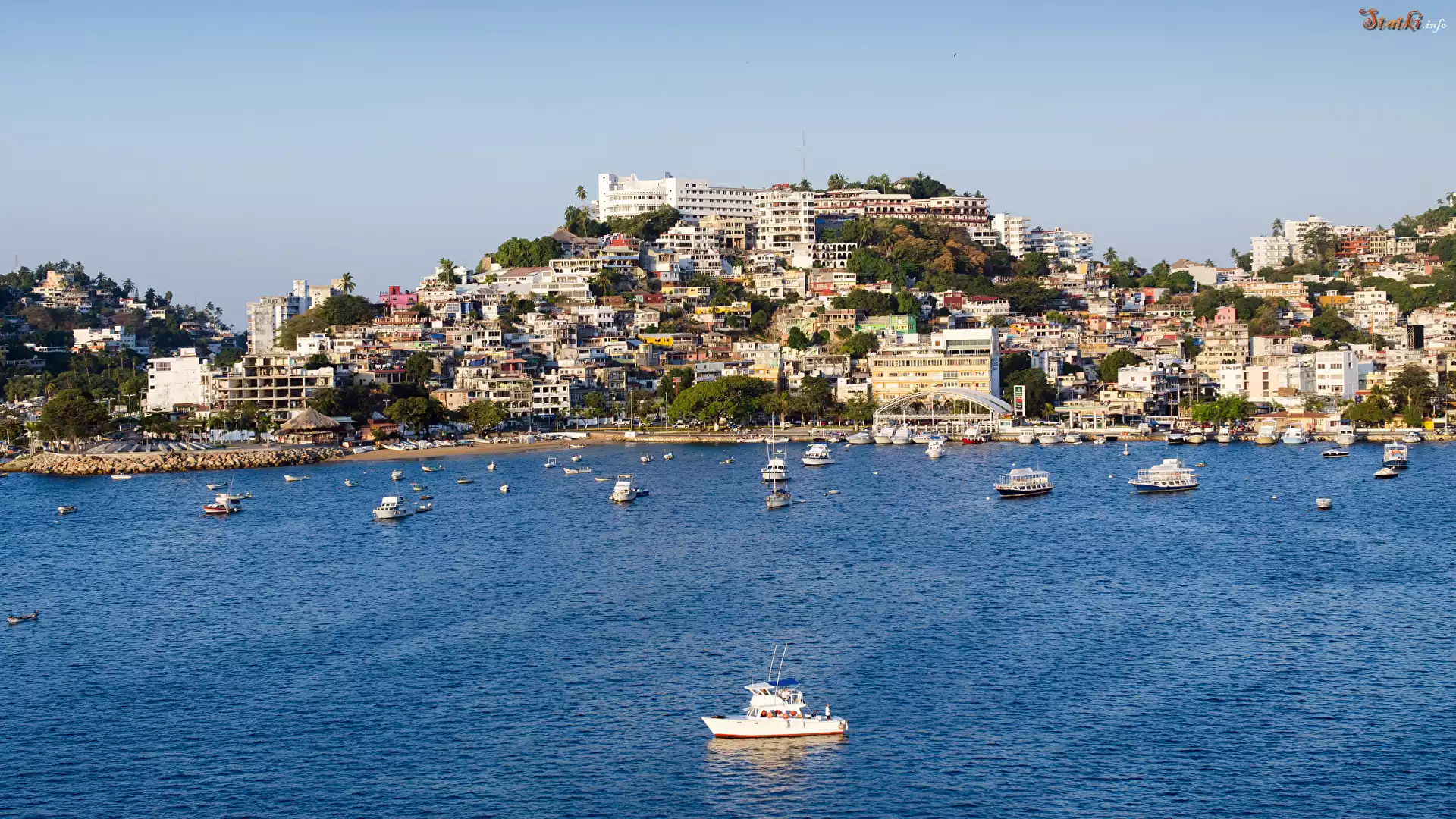 Statek Meksyk, Acapulco, Kurort, Wzgórze, Domy, Morze, Motorówki, Zatoka