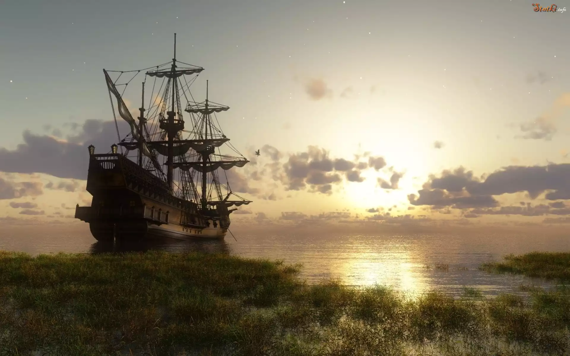 Statek Zakotwiczony, Żaglowiec, Brzeg