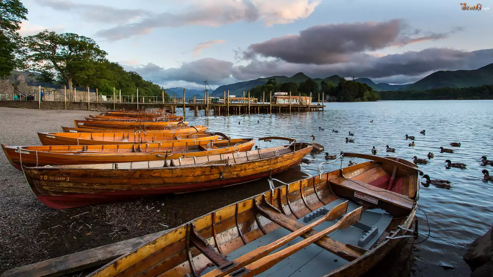Łódki, Kaczki, Jezioro Derwent Water, Góry, Keswick, Anglia
