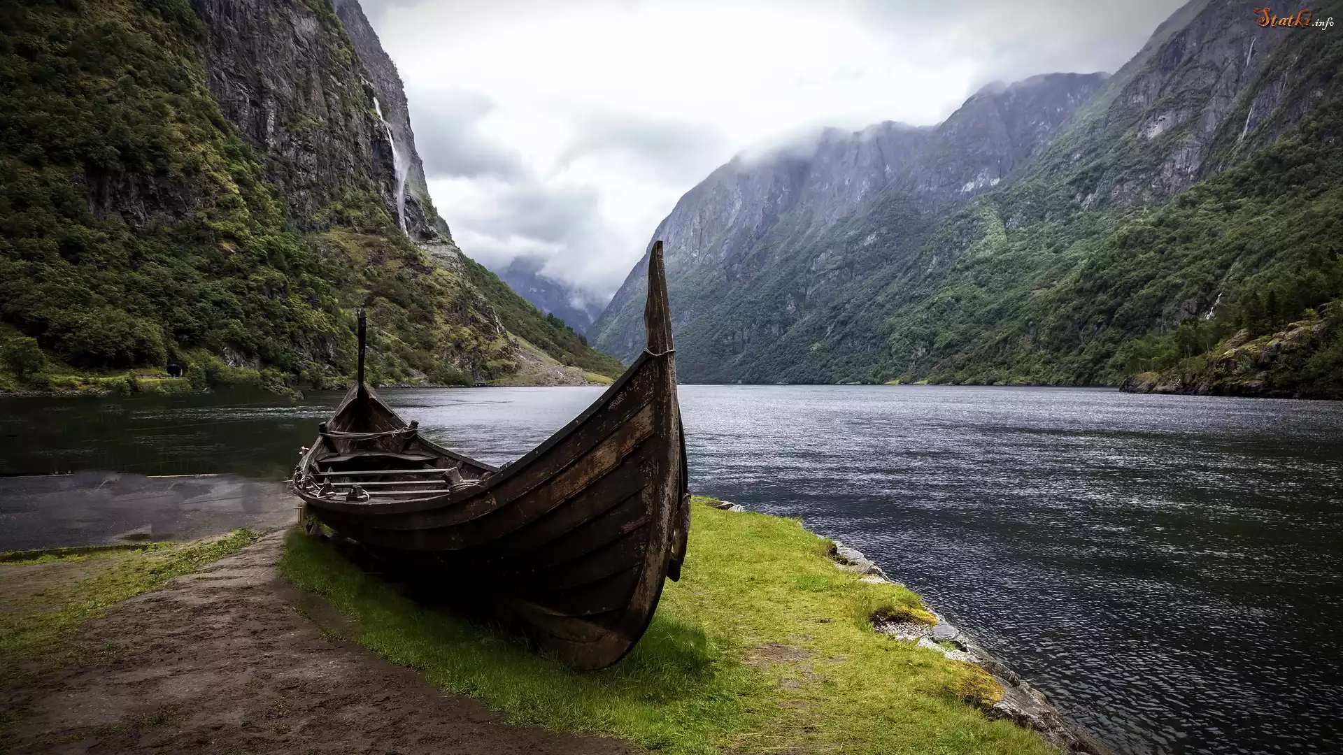 Statek Łódka, Brzeg, Fiord, Hardangerfjord, Góry, Gmina Voss, Okręg Vestland, Norwegia