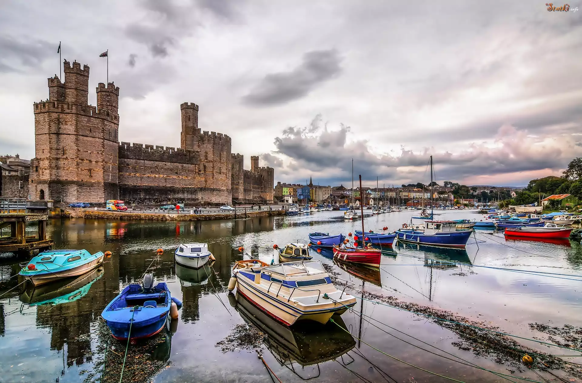 Miasto, Caernarfon, Port, Zamek, Walia, Wielka, Brytania