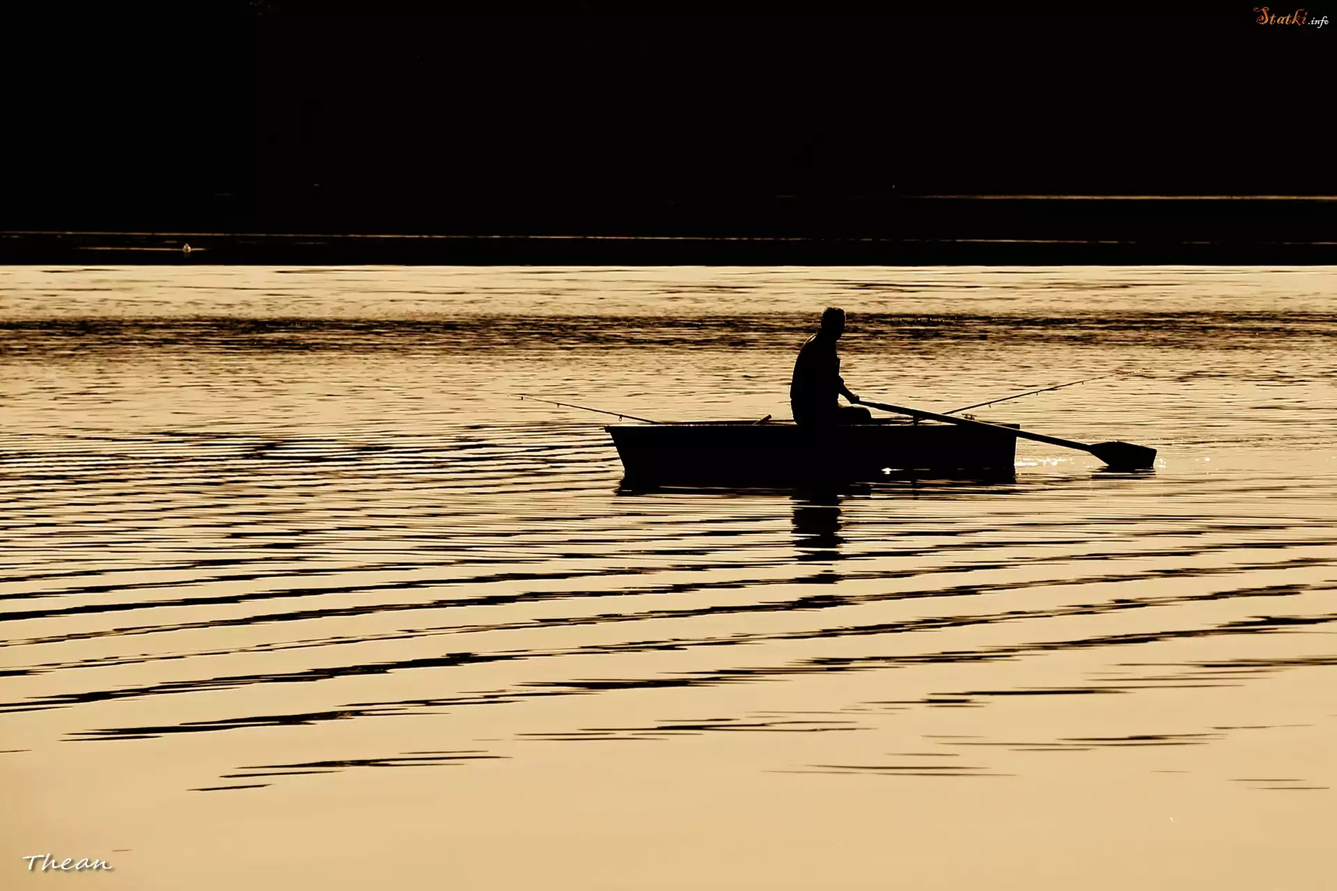 Człowiek, Na, Łodzi, Jezioro, Zachód Słońca