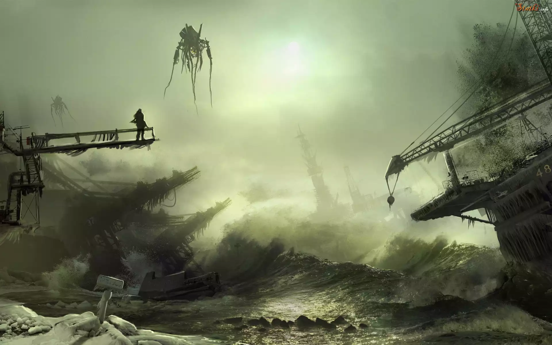 Fantasy, Wzburzone, Morze, Zatopione, Statki