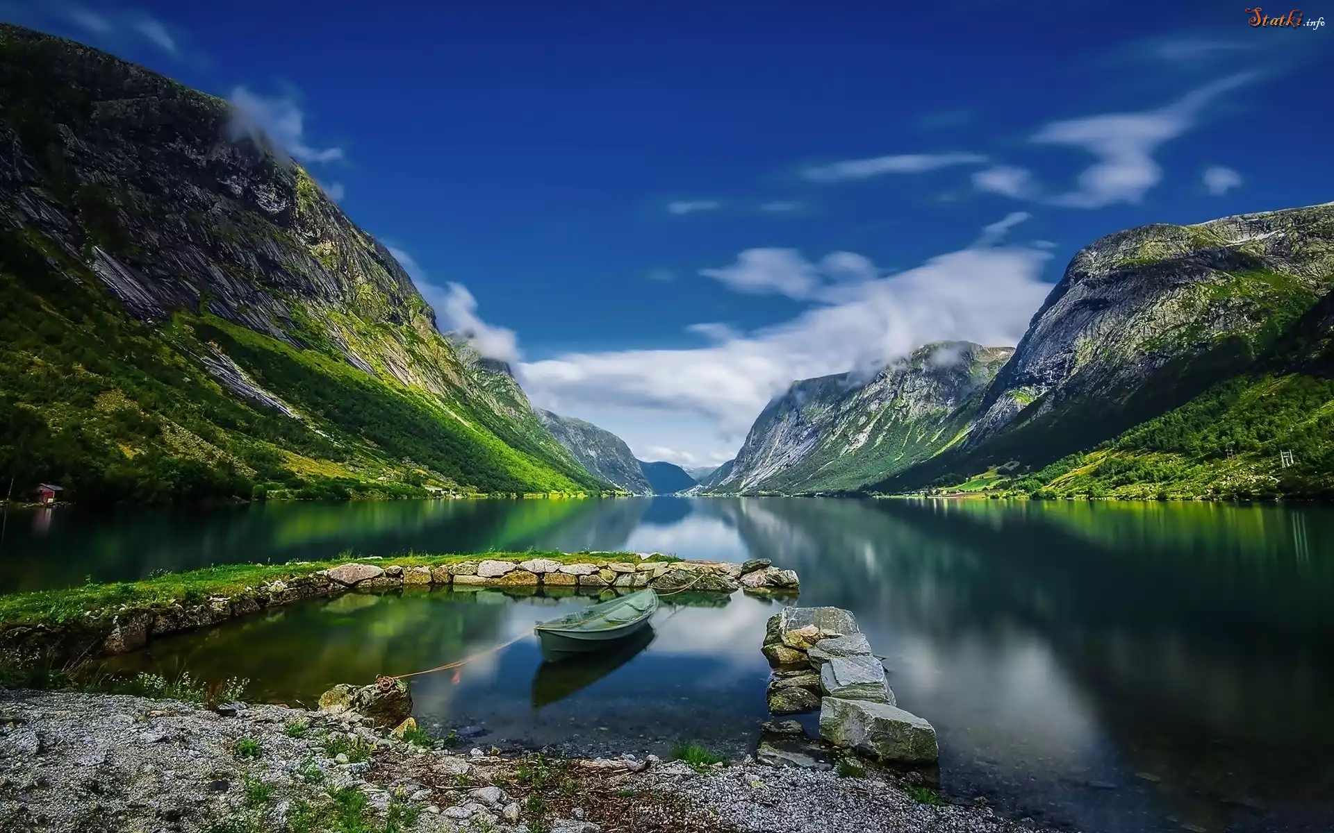 Norwegia, Góry, Fiord, Łódka, Kamienie
