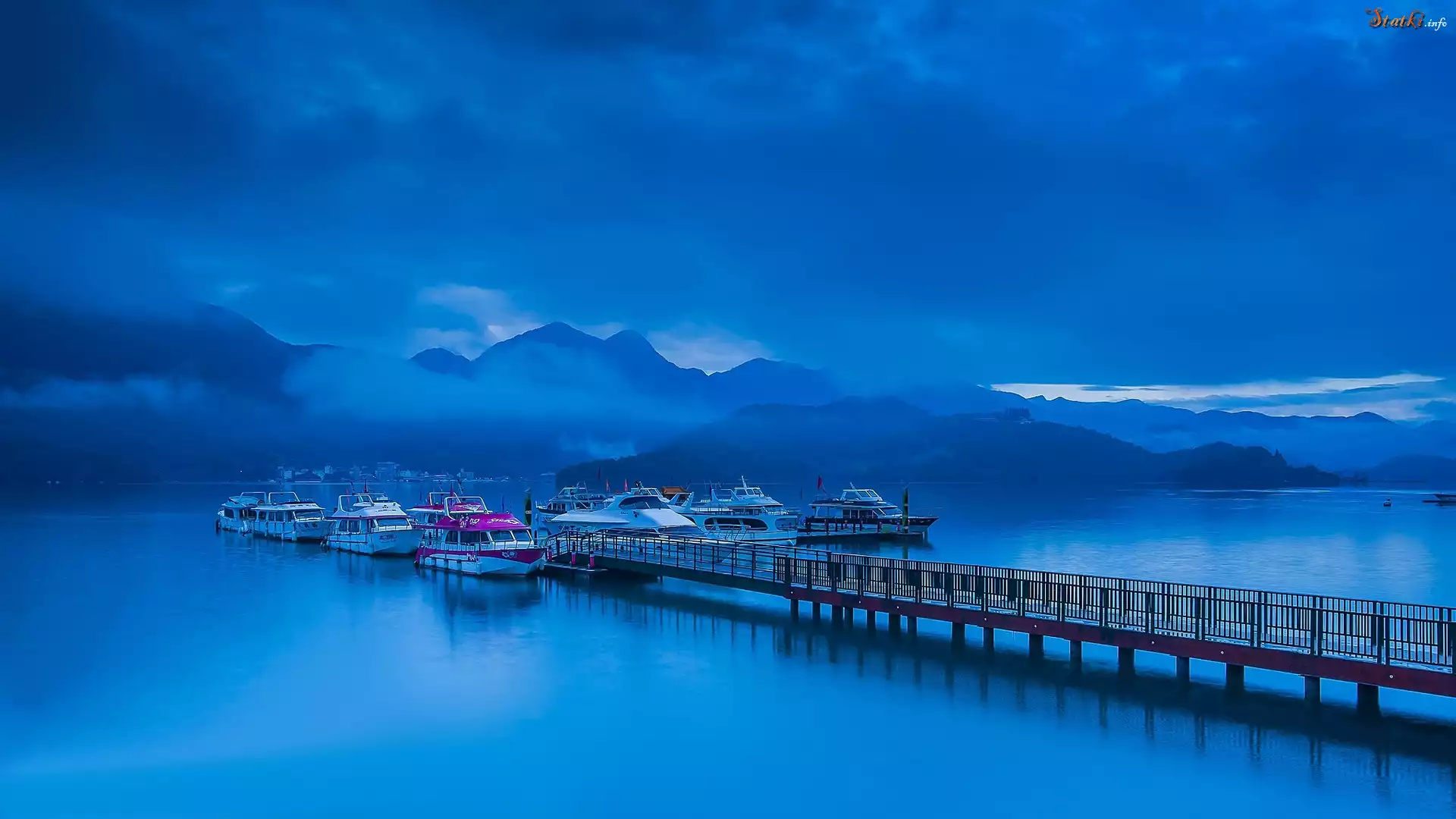 Góry, Mgła, Pomost, Przystań, Łodzie