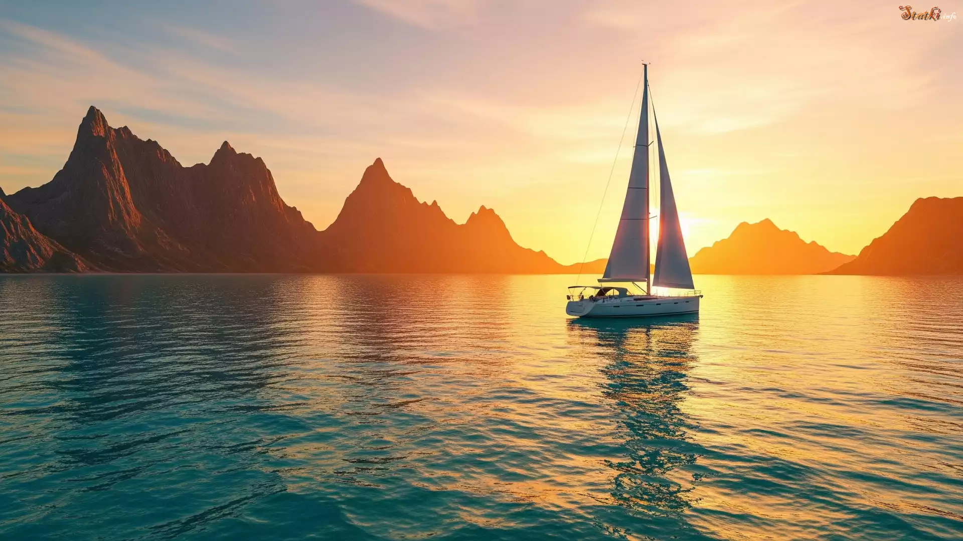 Statek Morze, Góry, Żaglówka, Zachód Słońca