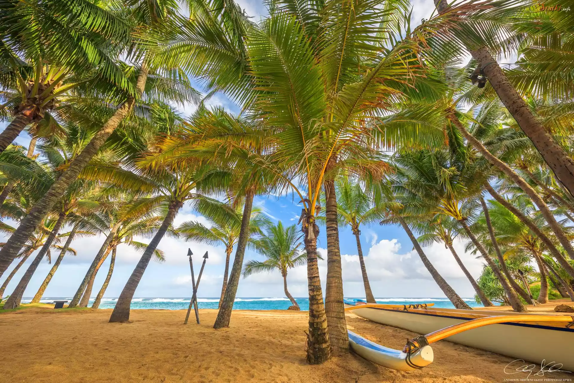 Hawaje, Palmy, Morze, Plaża, Łódka