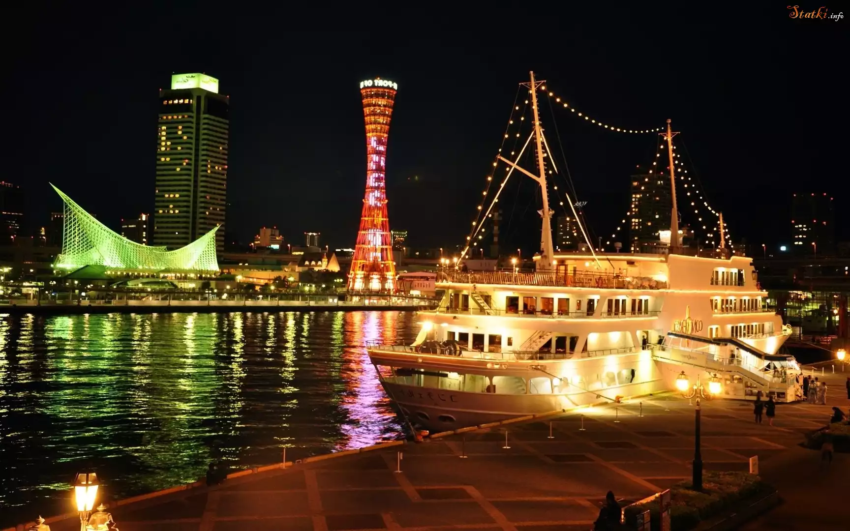 Statek Japonia, Kobe, Jacht, Noc
