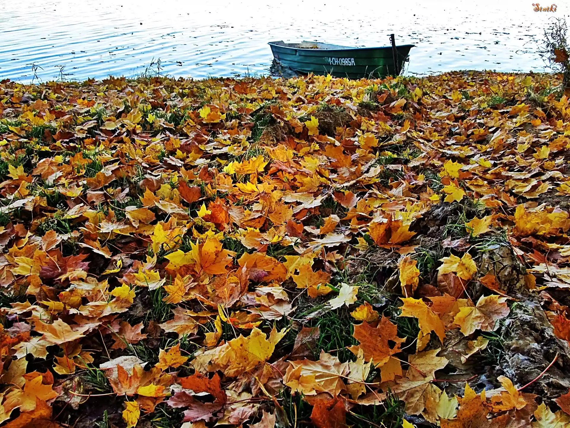 Statek Jesień, Liście, Klonu, Łódka, Jezioro