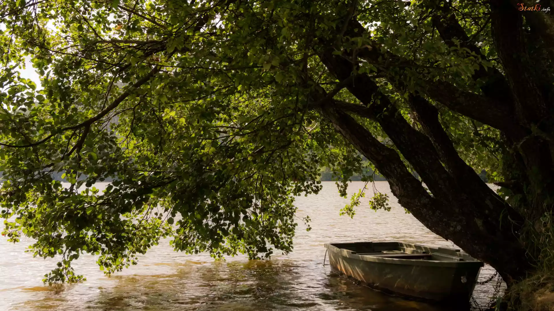 Statek Jezioro, Drzewo, Gałęzie, Łódka