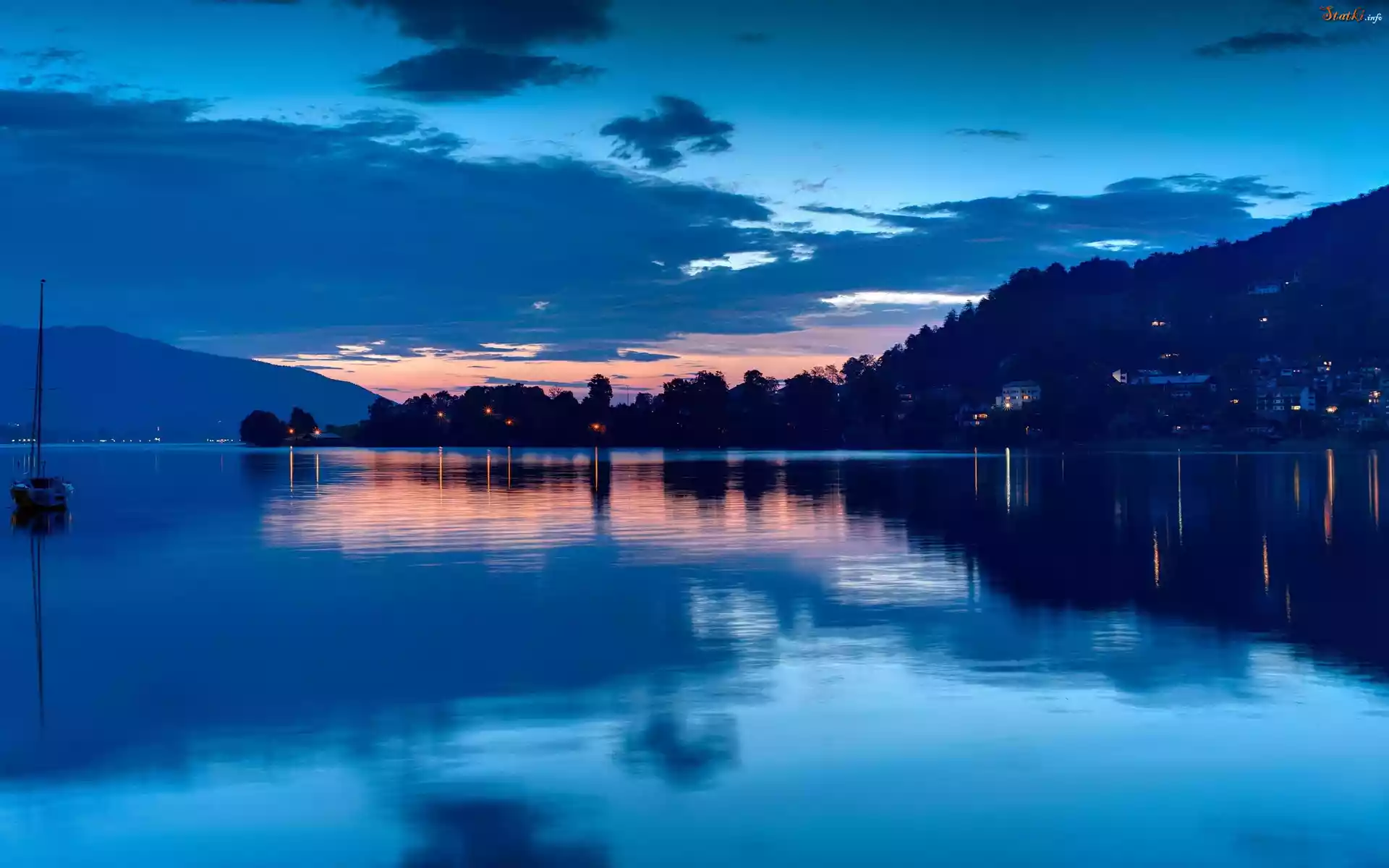 Statek Jezioro, Łódka, Kurort, Lasy, Góry, Zmierzch