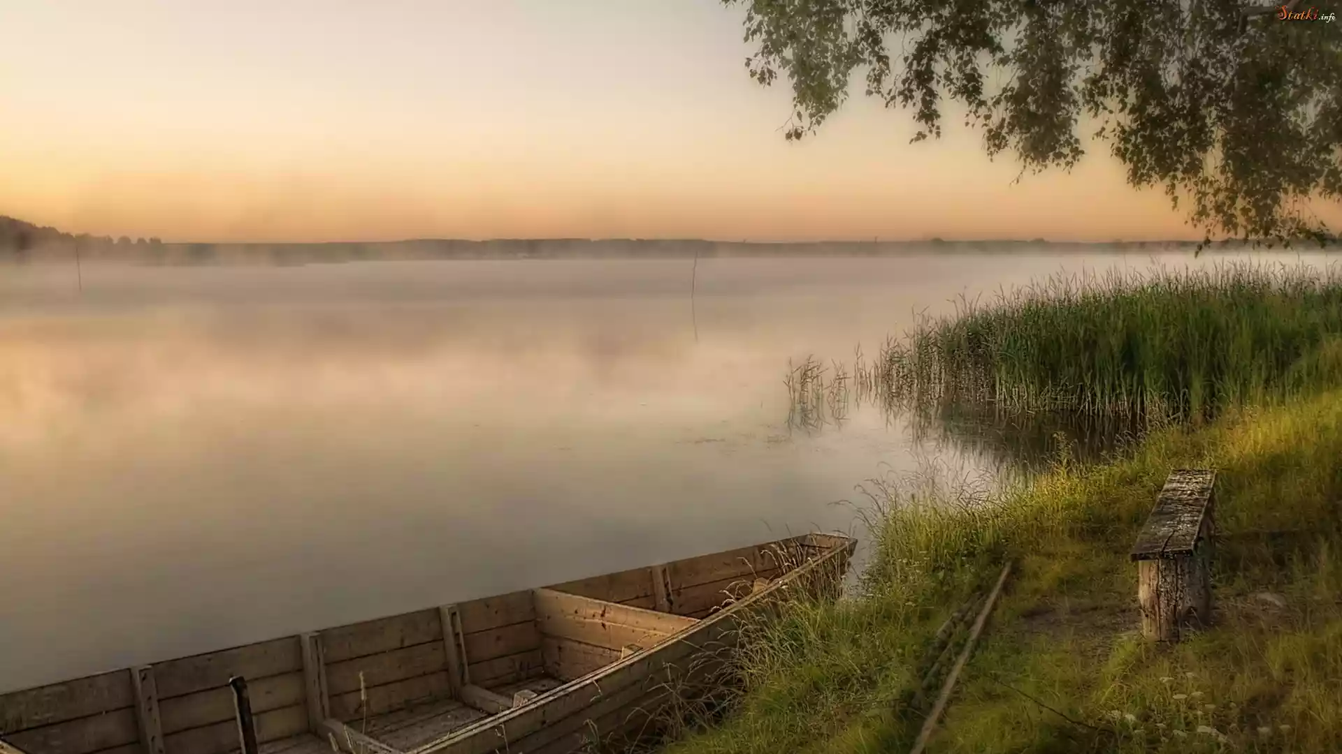 Statek Jezioro, Łódz, Mgła, Szuwary