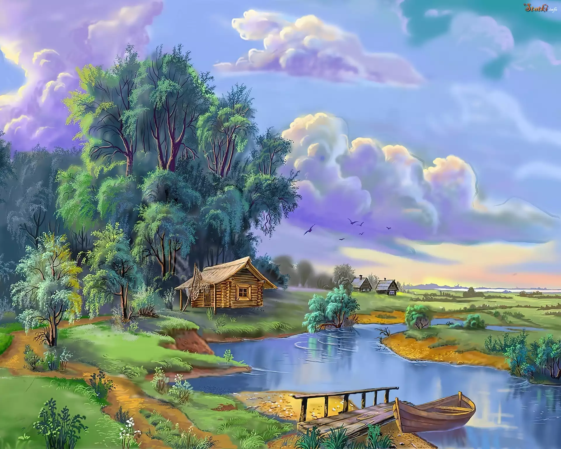 Jezioro, Łódka, Szopa, Niebo, Lato