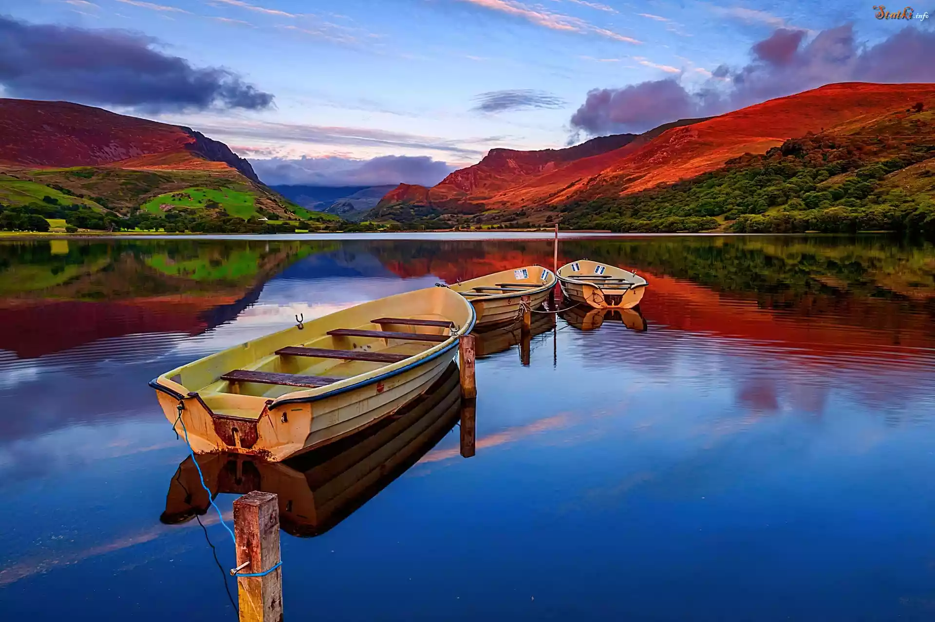 Statek Jezioro, Góry, Odbicie, Łódki