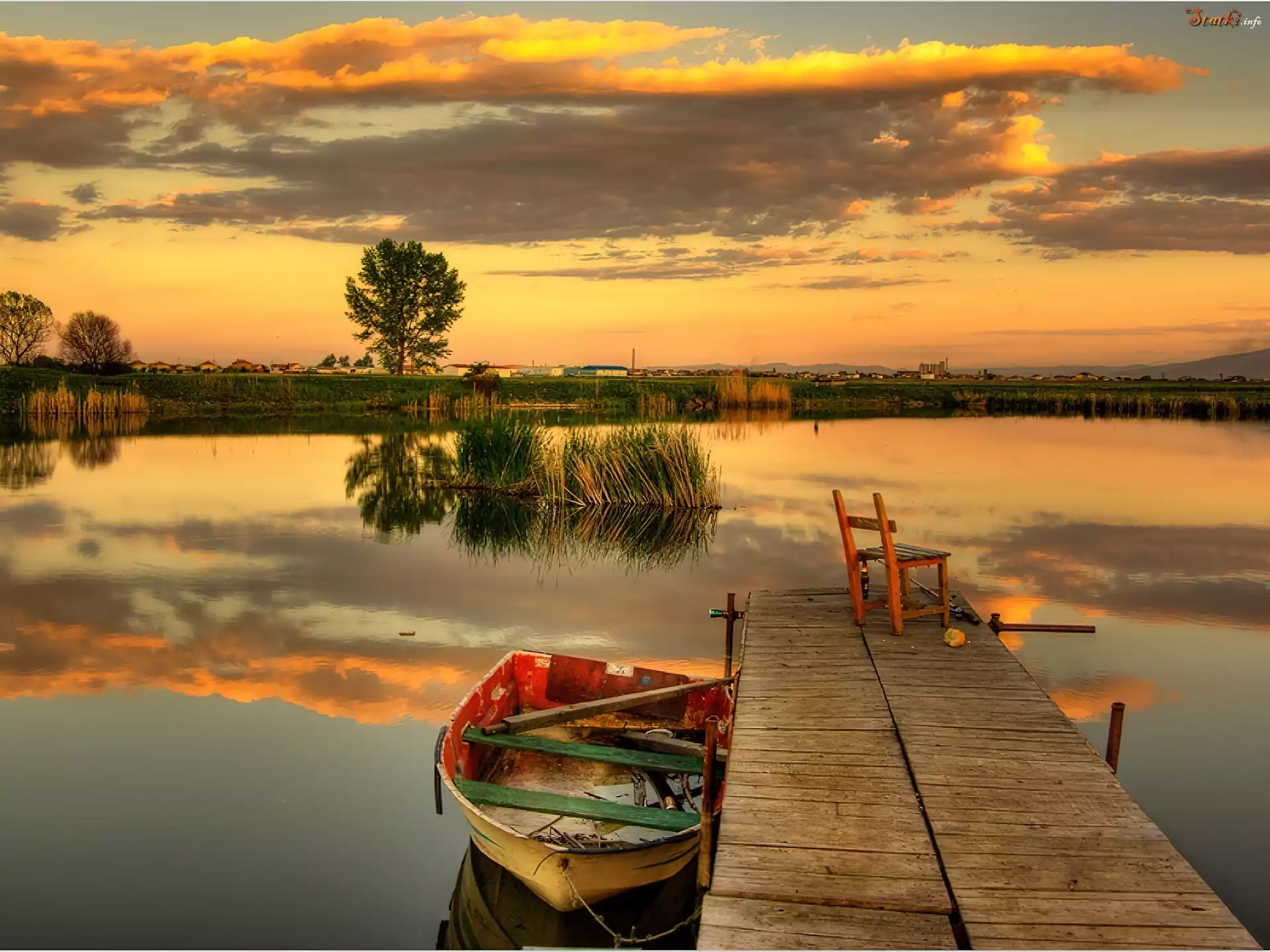 Jezioro, Kładka, Łódka, Krzesło
