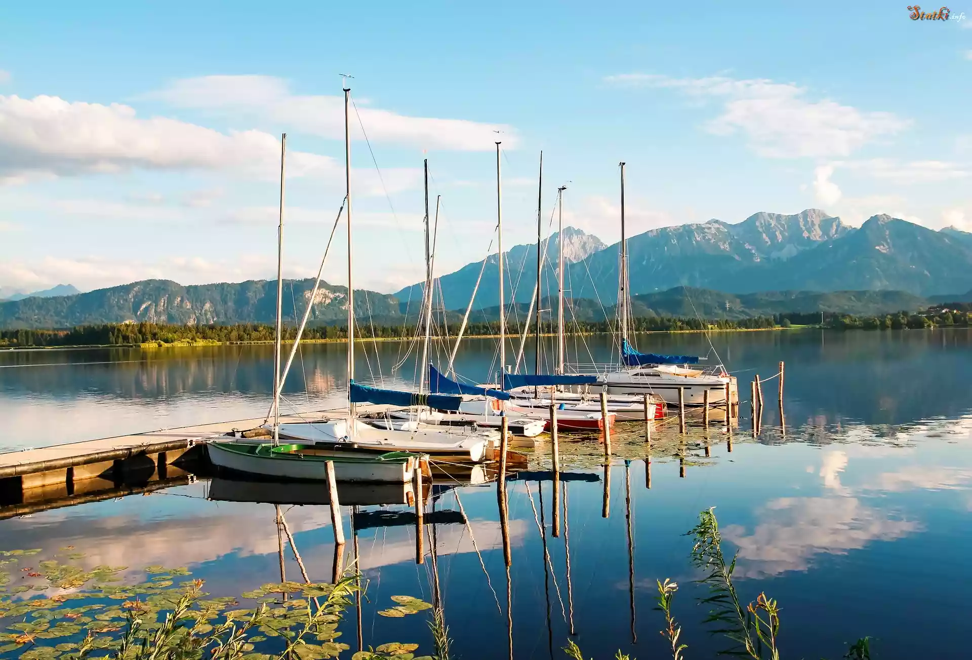 Statek Jezioro, Żaglówki, Pomost, Góry