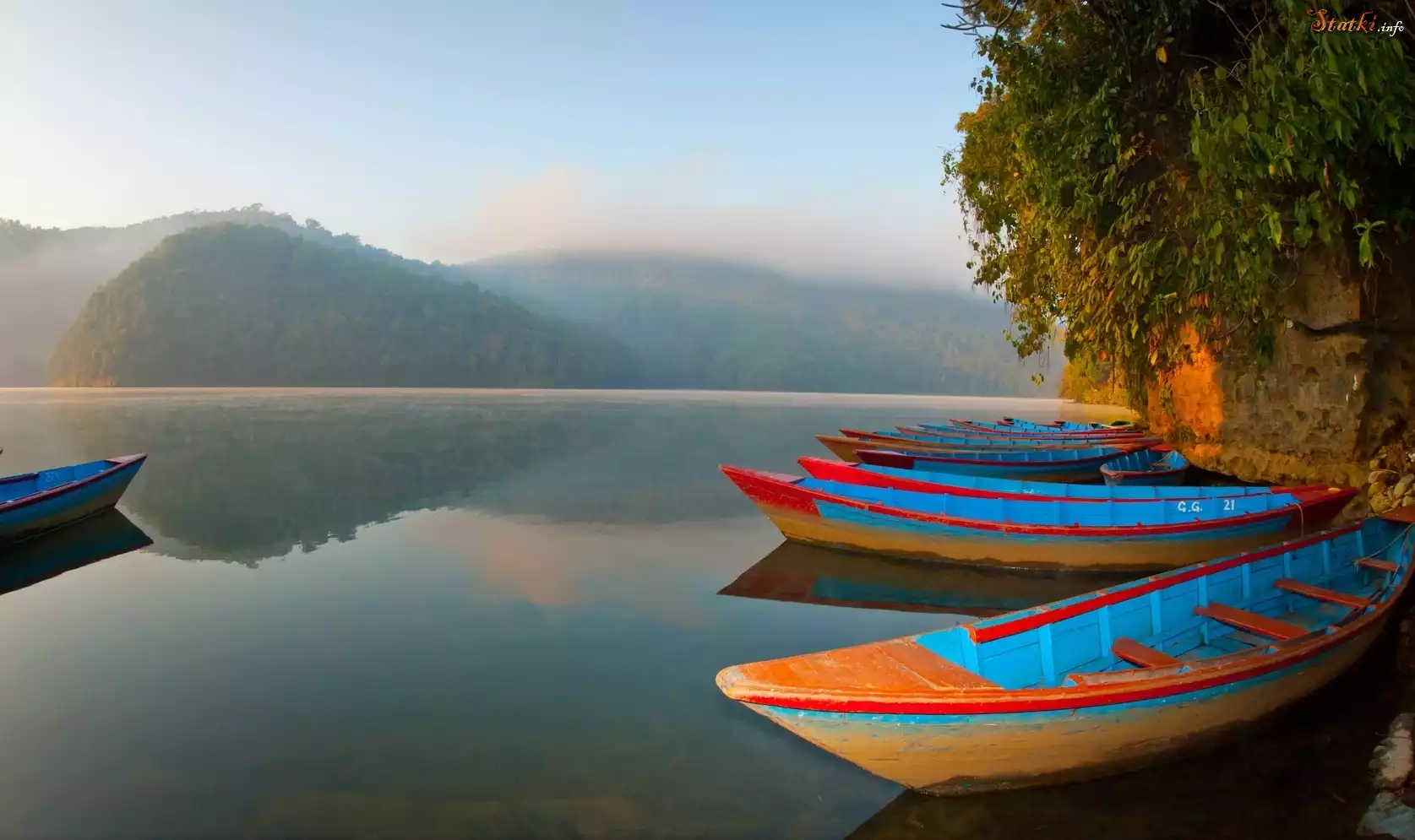 Jezioro, Phewa, Pokhara, Łodzie, Poranek, Nepal