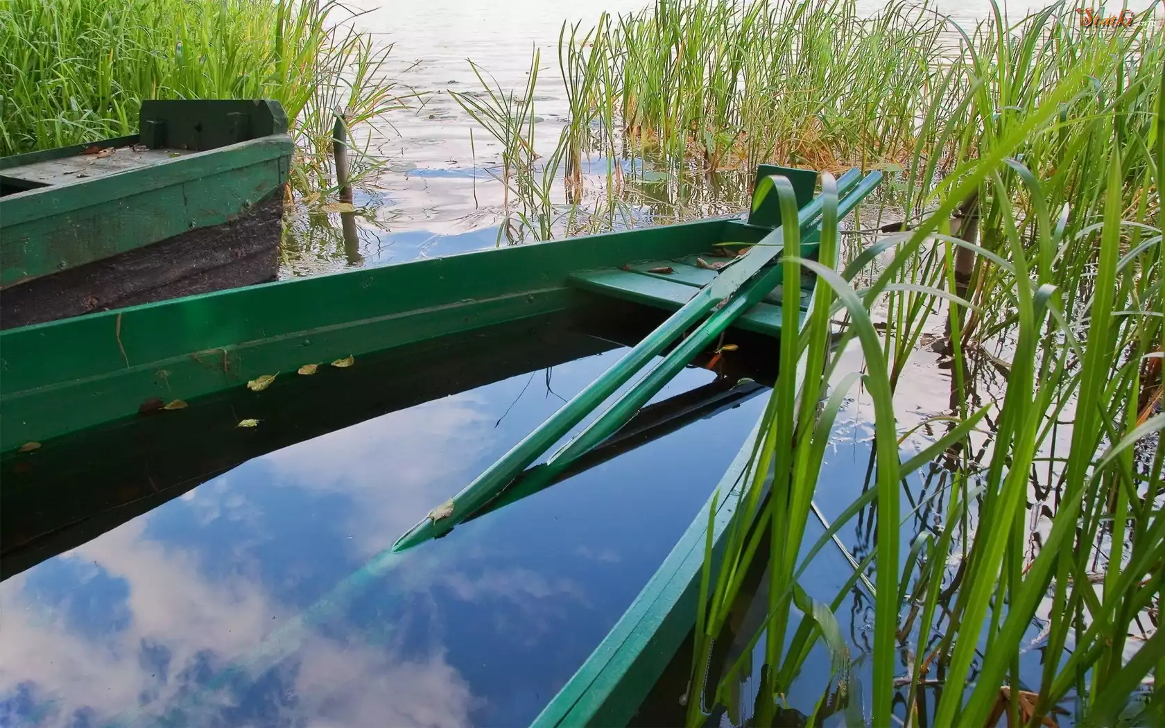 Statek Jezioro, Łódka, Wiosła, Tatarak