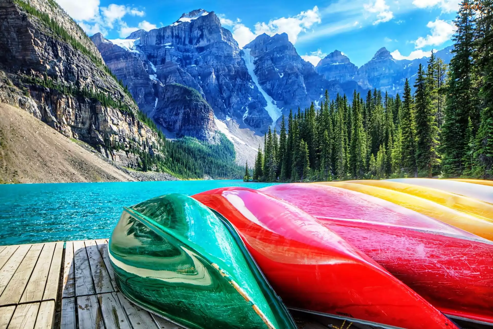 Statek Kajaki, Góry, Lasy, Jezioro, Kanada