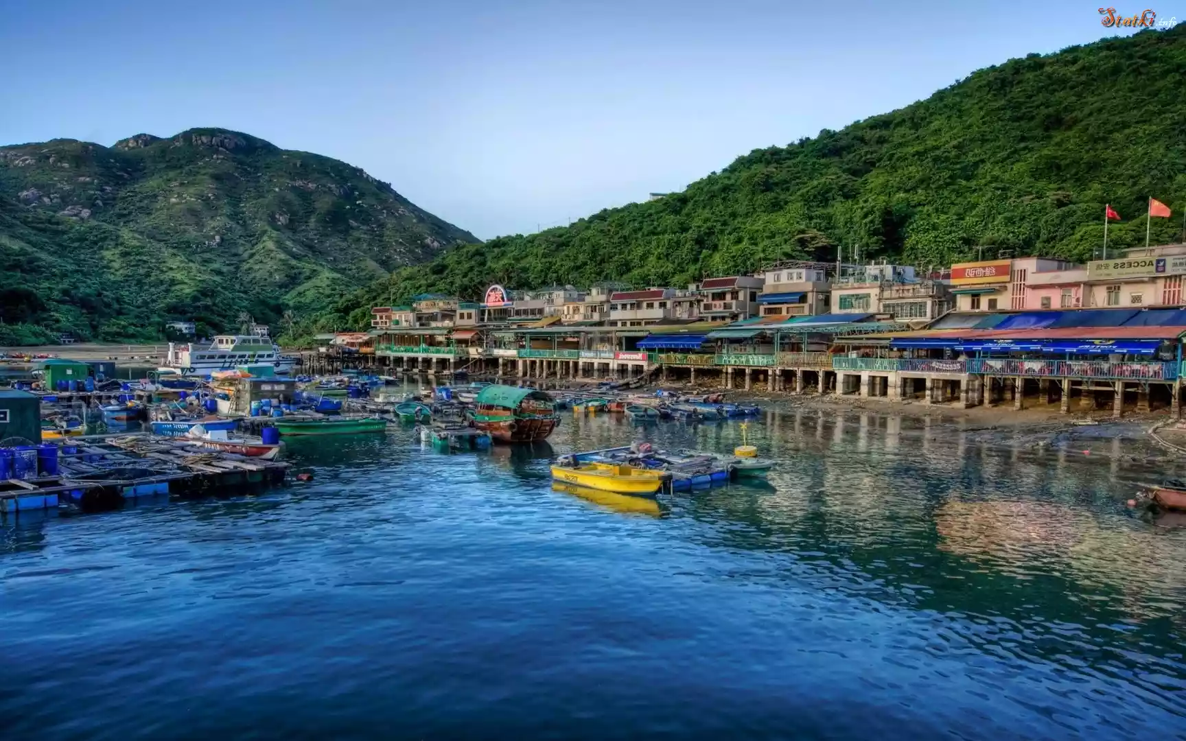 Statek Hong Kong, Wyspa, Lamma, Morze, Las, Domy, Łódki