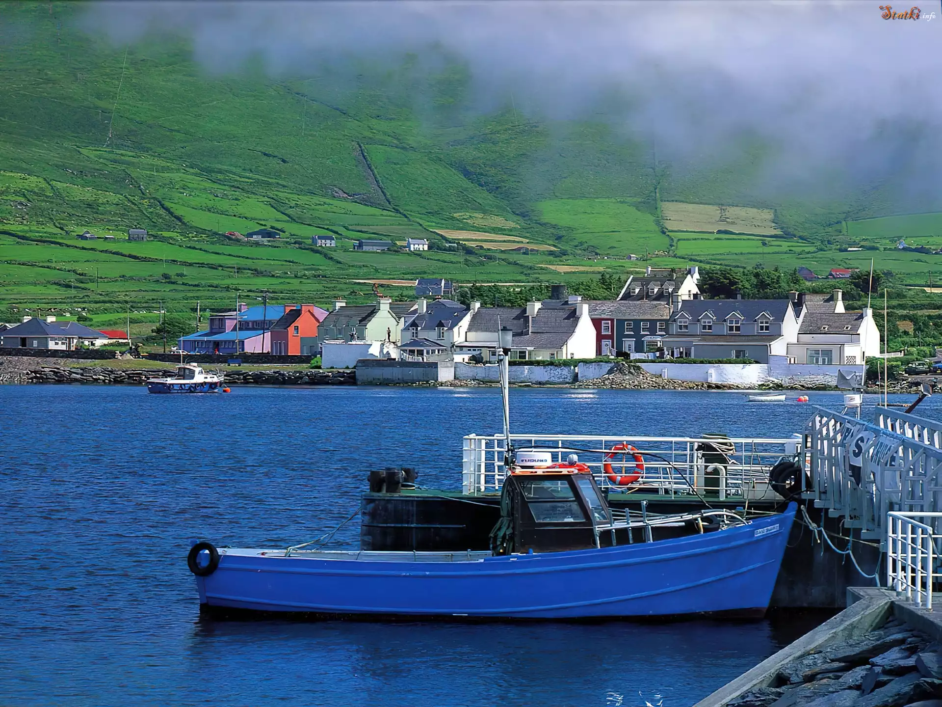 Statek Kuter, Domy, Zielone, Wzgórze