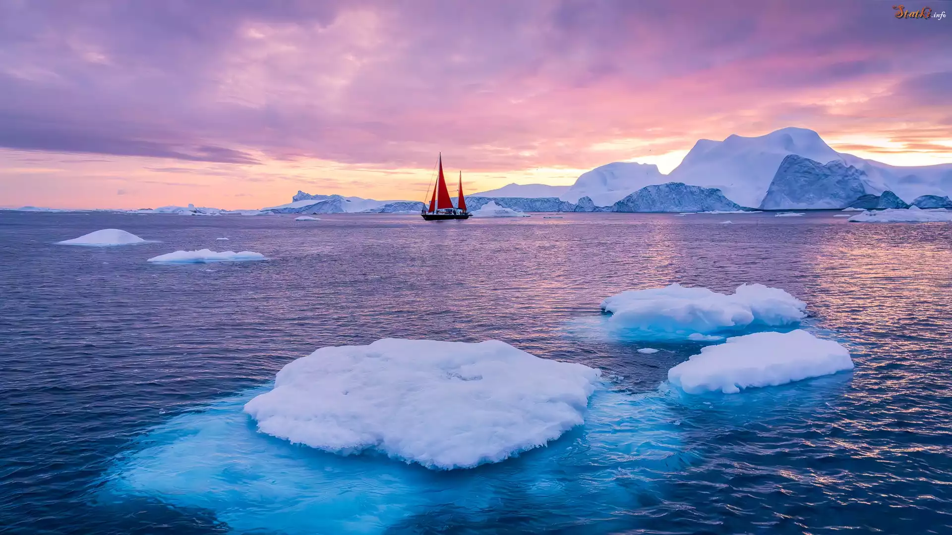 Statek Dania, Grenlandia, Morze, Góry lodowe, Żaglówka, Kry lodowe