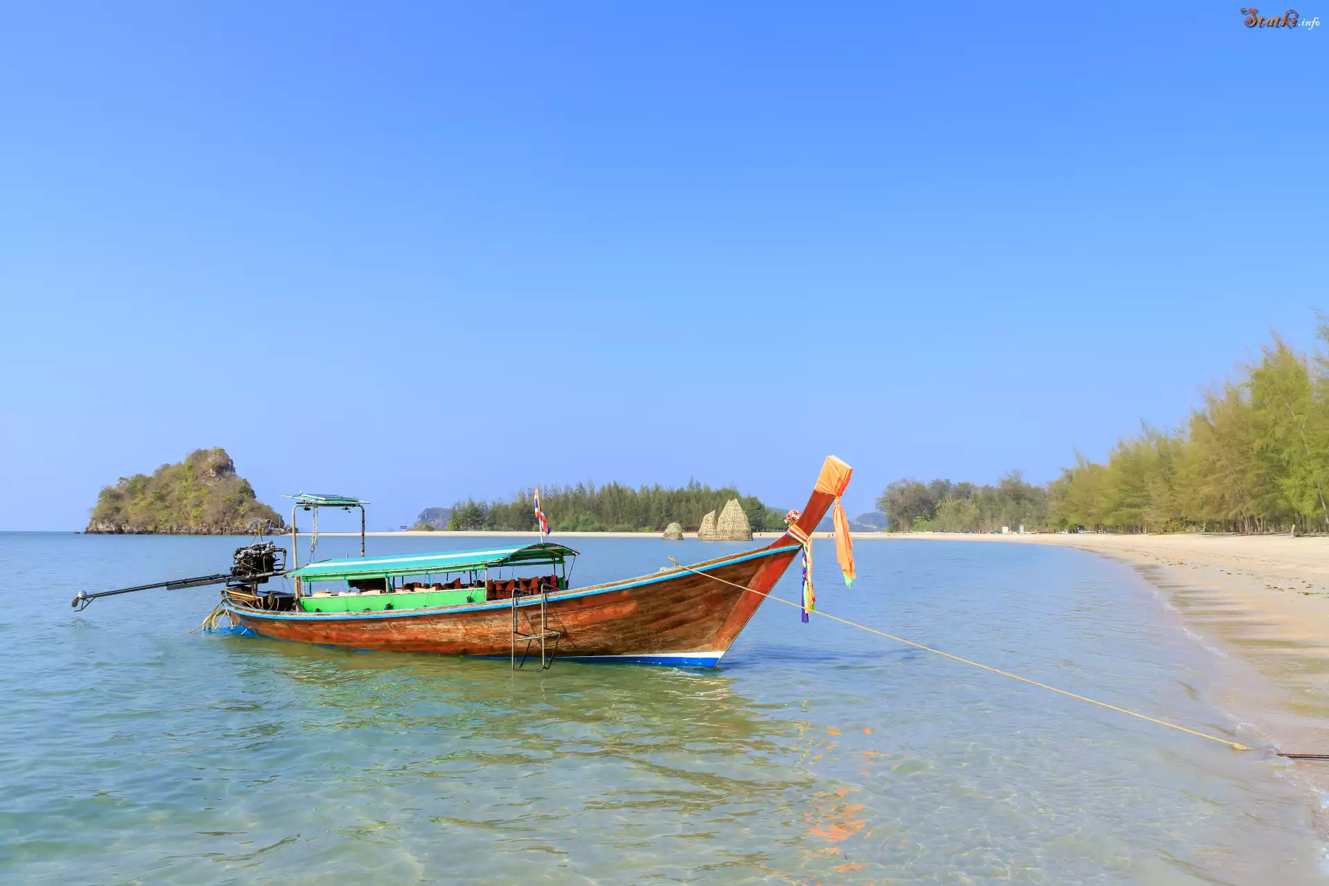 Statek Phuket, Plaża, Noppharat Thara, Drzewa, Skała, Łódź, Morze Andamańskie, Krabi, Tajlandia