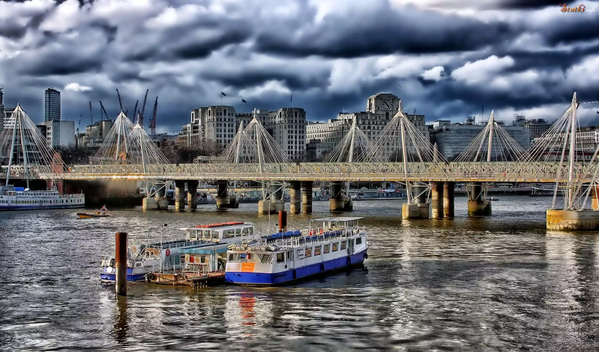 Londyn, Most, Rzeka, Chmury, Statki, Wycieczkowe