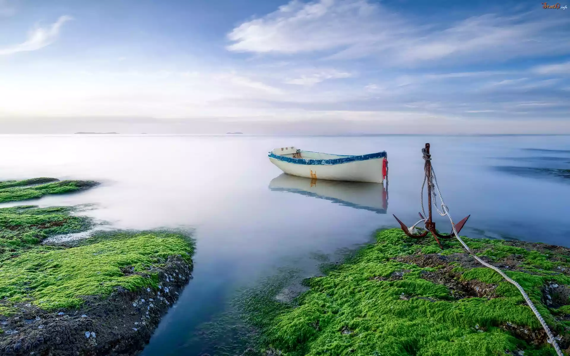 Łódka, Jezioro, Kotwica, Mech, Poranek