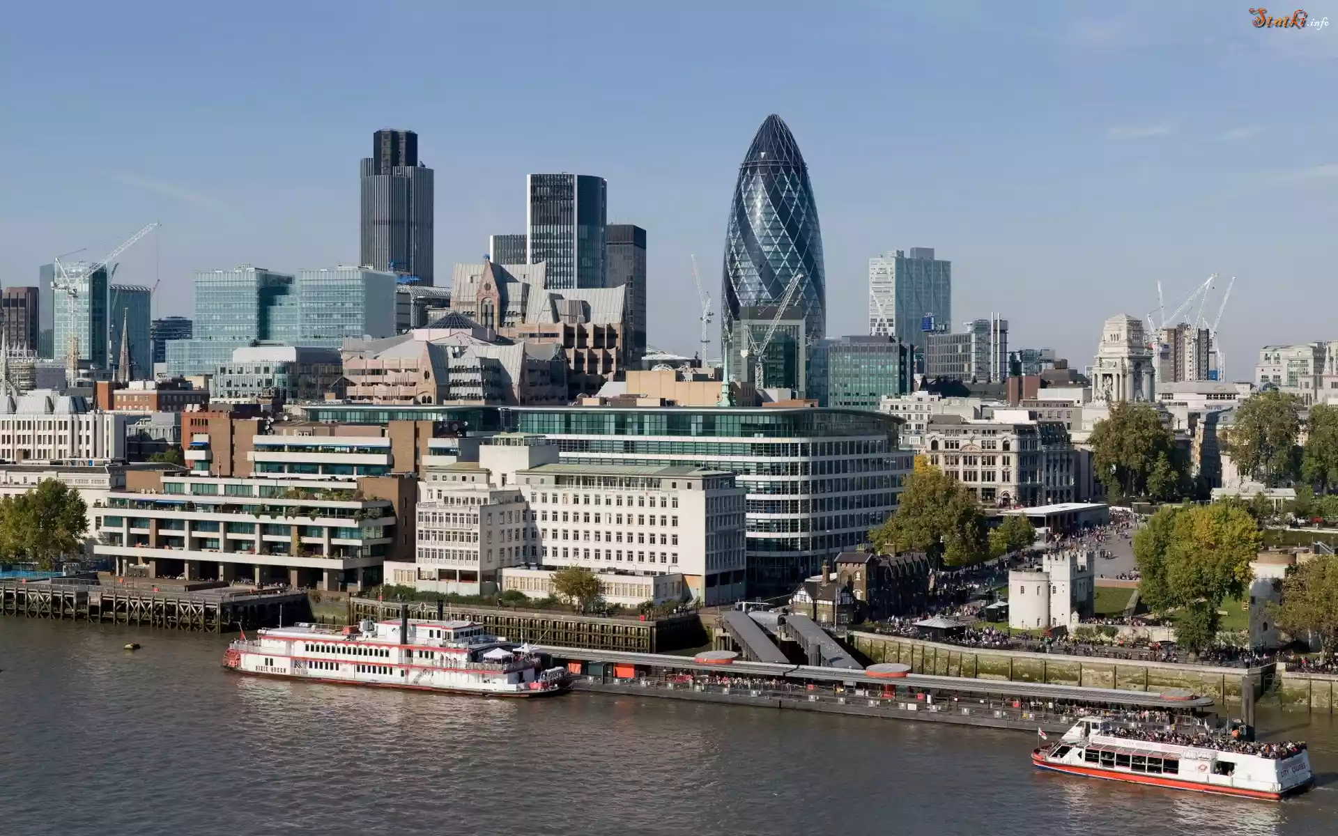 Statek Tamiza, Statki, Biurowce, Ulice, Wieżowce, Londyn, Anglia, Panorama, Miasta