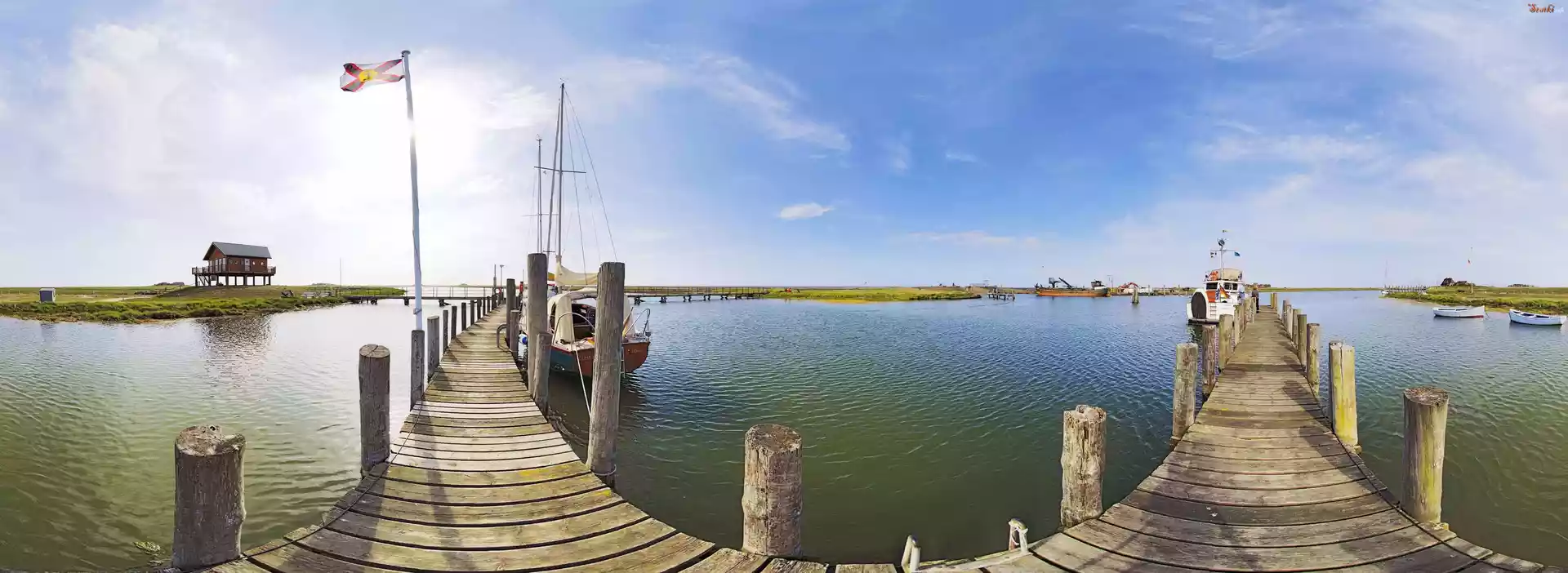 Statek Molo, Woda, Łódki, Motorówka