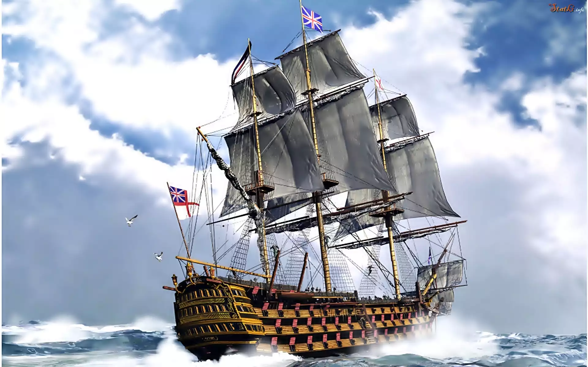 Statek Żaglowiec, Morze, Chmury