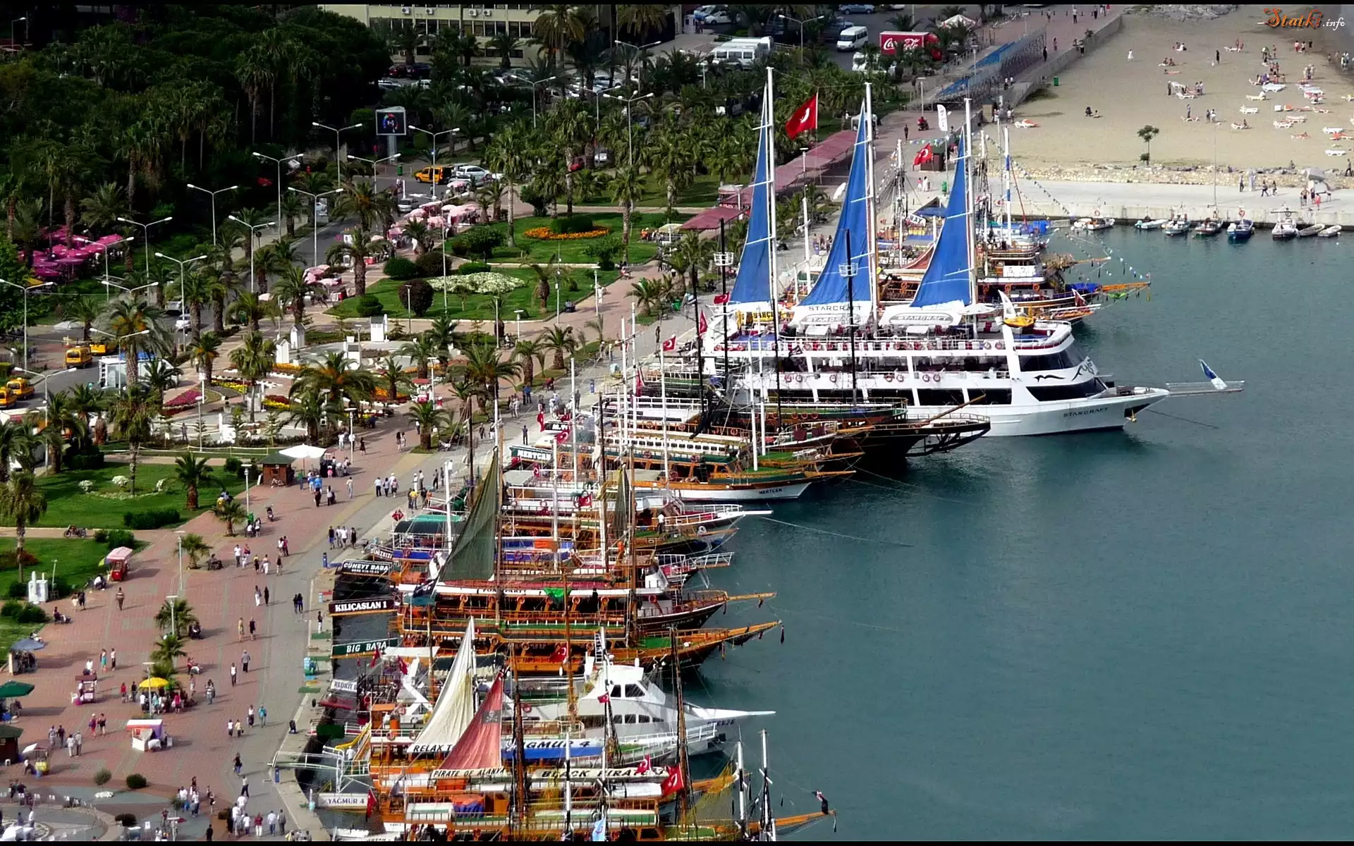 Statek Antalia, Morze, Nabrzeże, Przystań, Jachty, Bulwar, Roślinność
