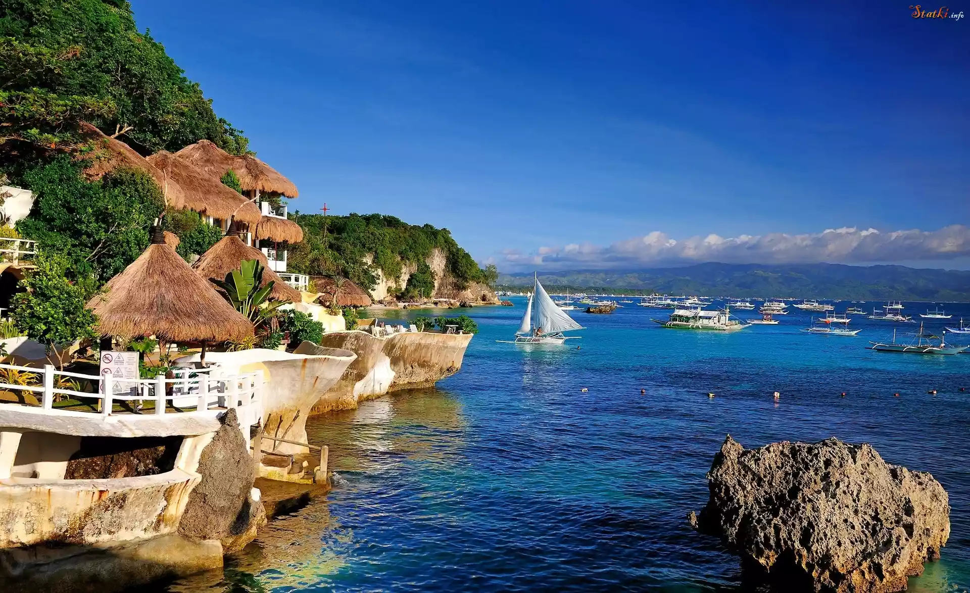 Statek Morze, Wybrzeże, Góry, Łodzie