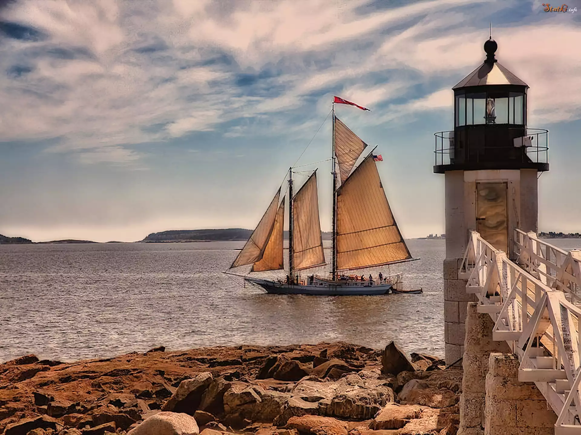 Statek Morze, Żaglowiec, Latarnia, Morska