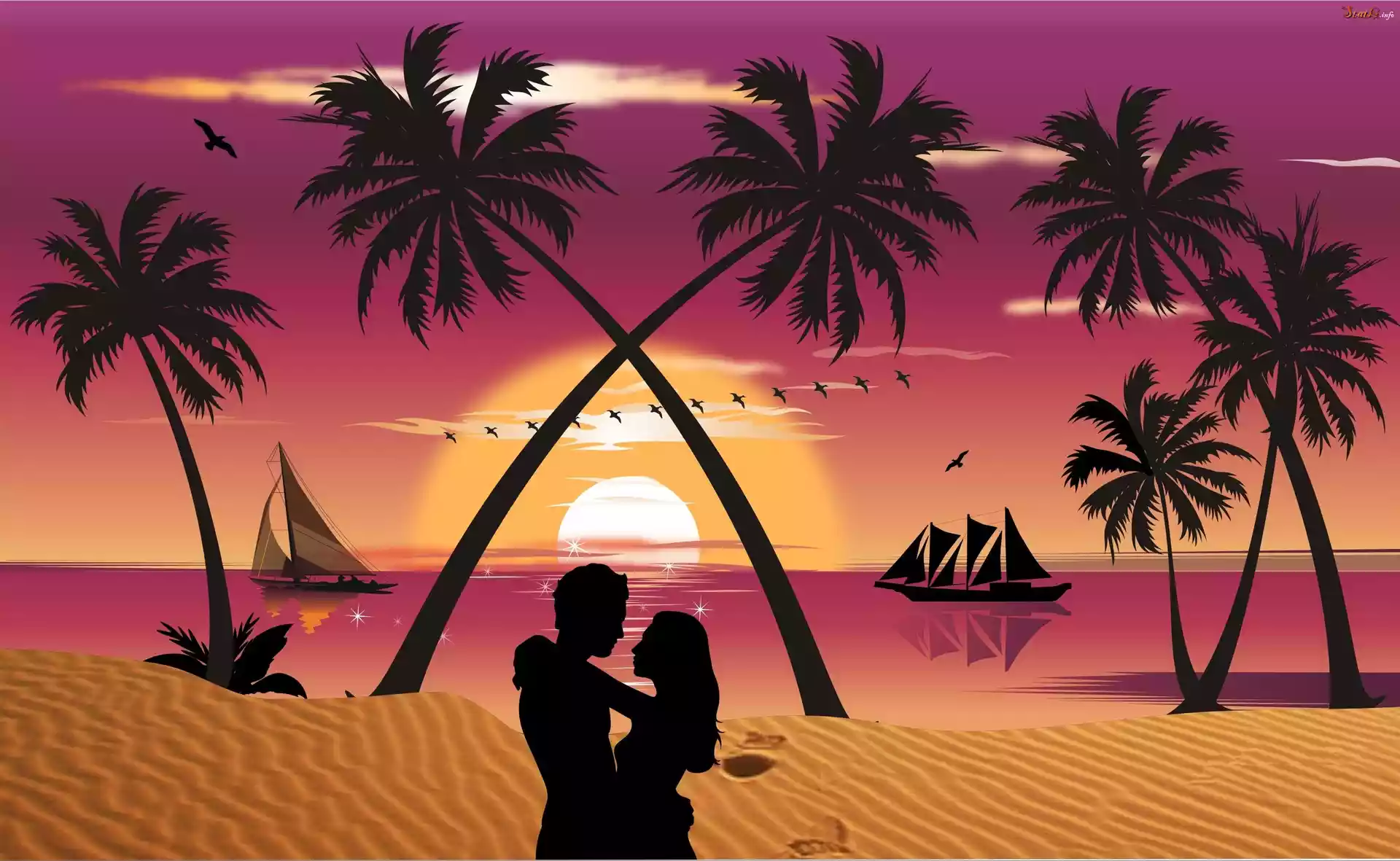 Statek Morze, Plaża, Palmy, Mężczyzna, Kobieta