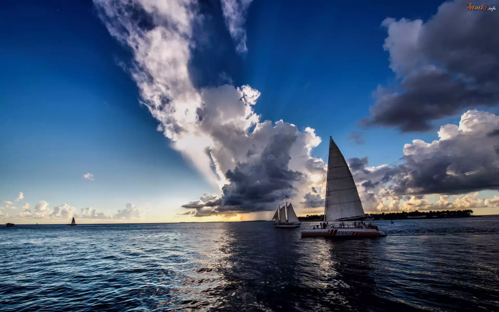 Morze, Fale, Jachty, Niebo, Chmury
