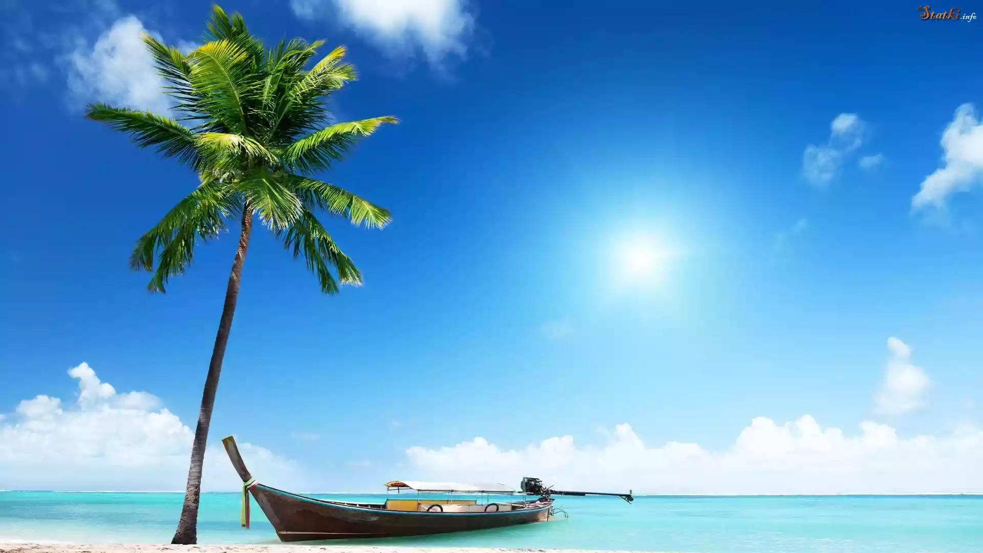 Statek Morze, Łódka, Palma, Niebo, Lato