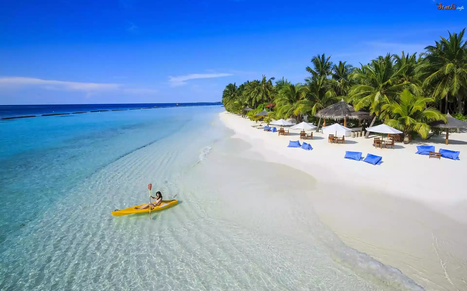 Statek Morze, Plaża, Palmy, Kajak