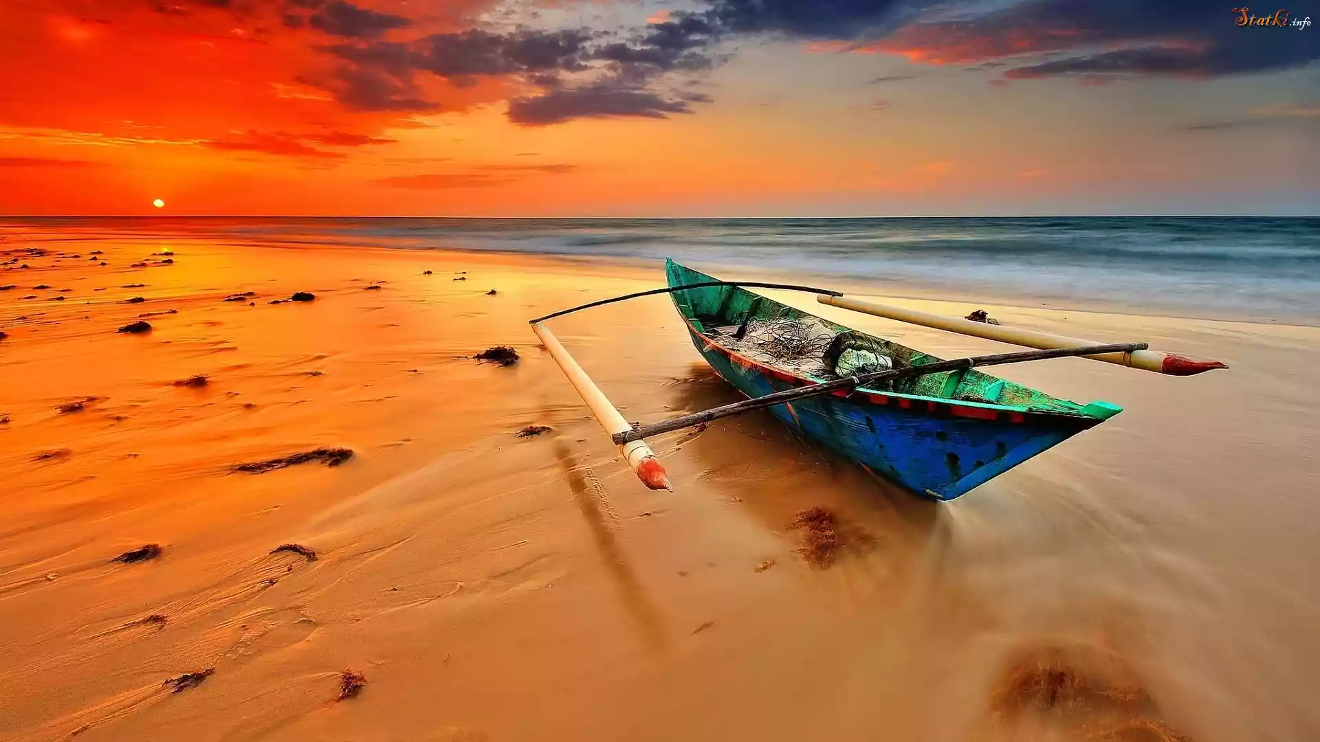 Statek Morze, Plaża, Piasek, Zachód, Słońca, Łódka