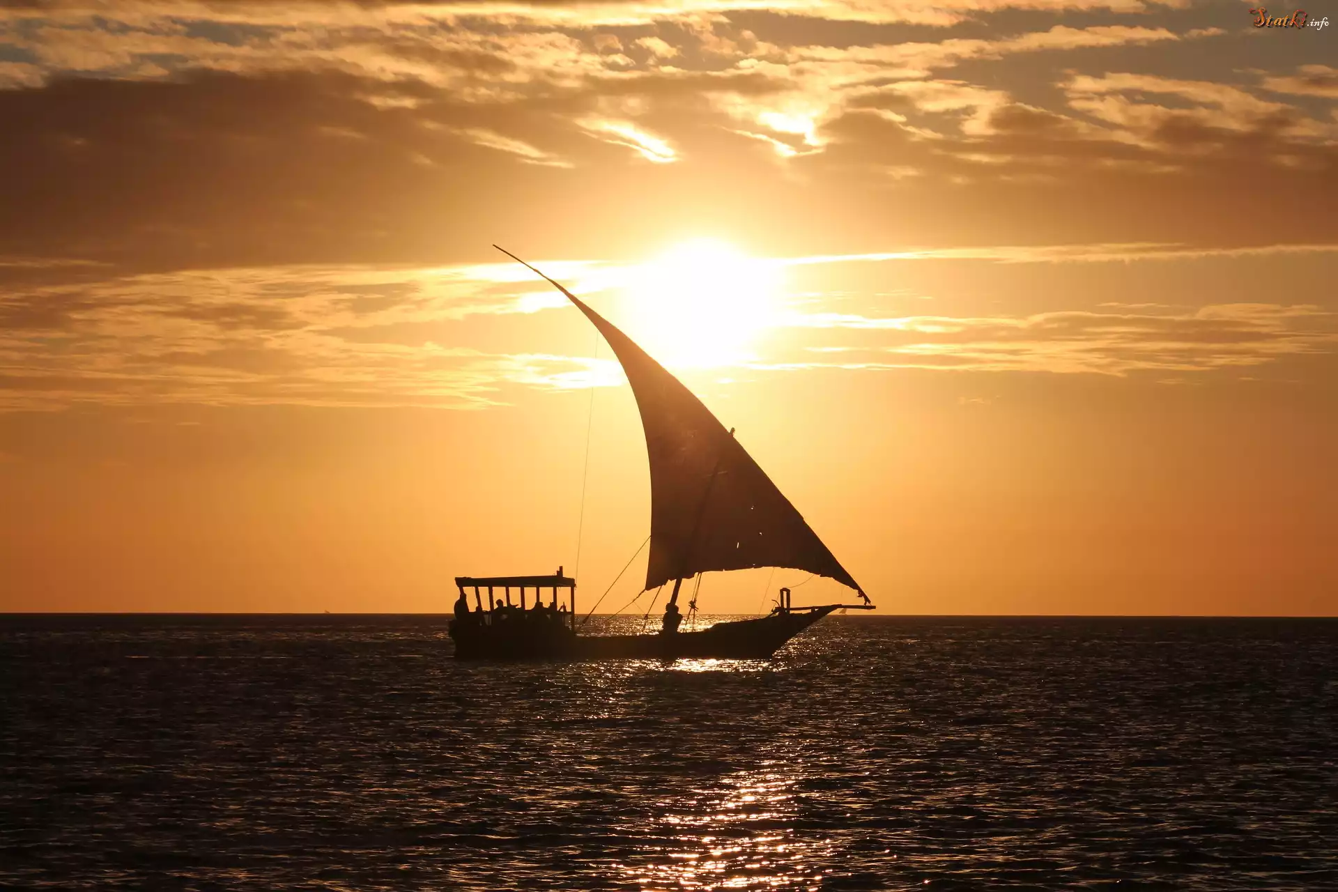 Statek Morze, Zachód słońca, Żaglówka
