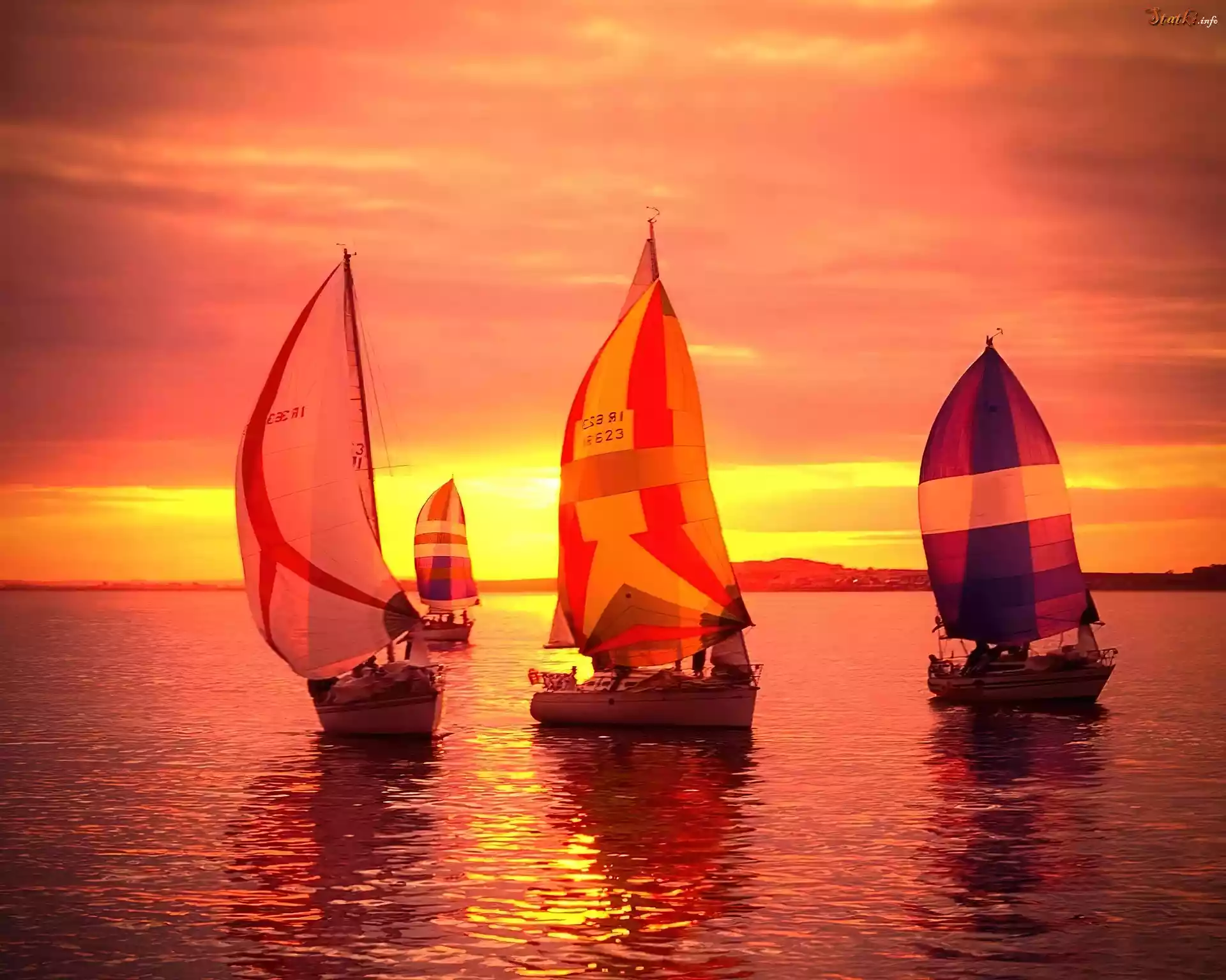 Morze, Zachód, Słońca, Trzy, Jachty