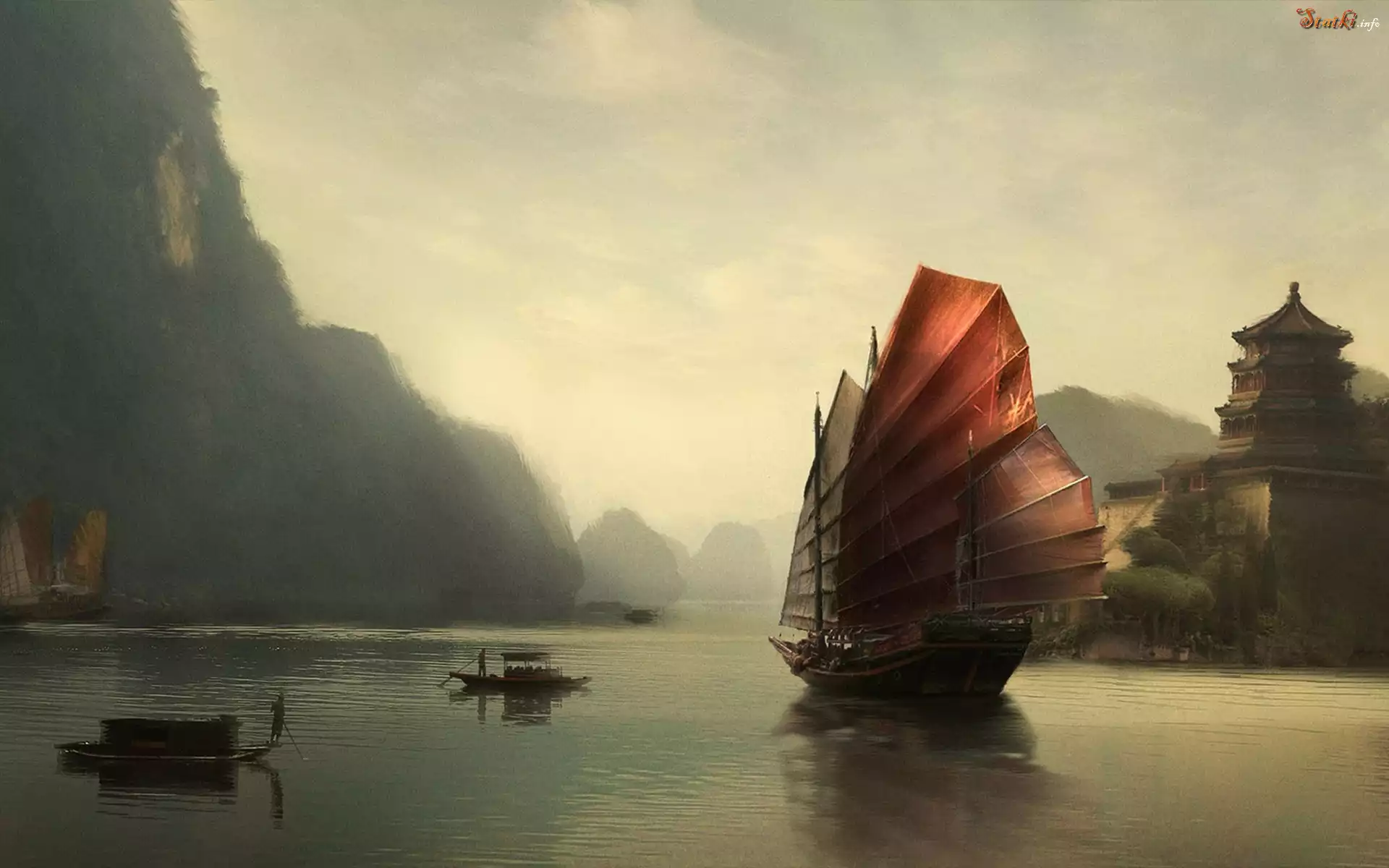 Statek Morze, Żaglowiec, Zamek, Góry