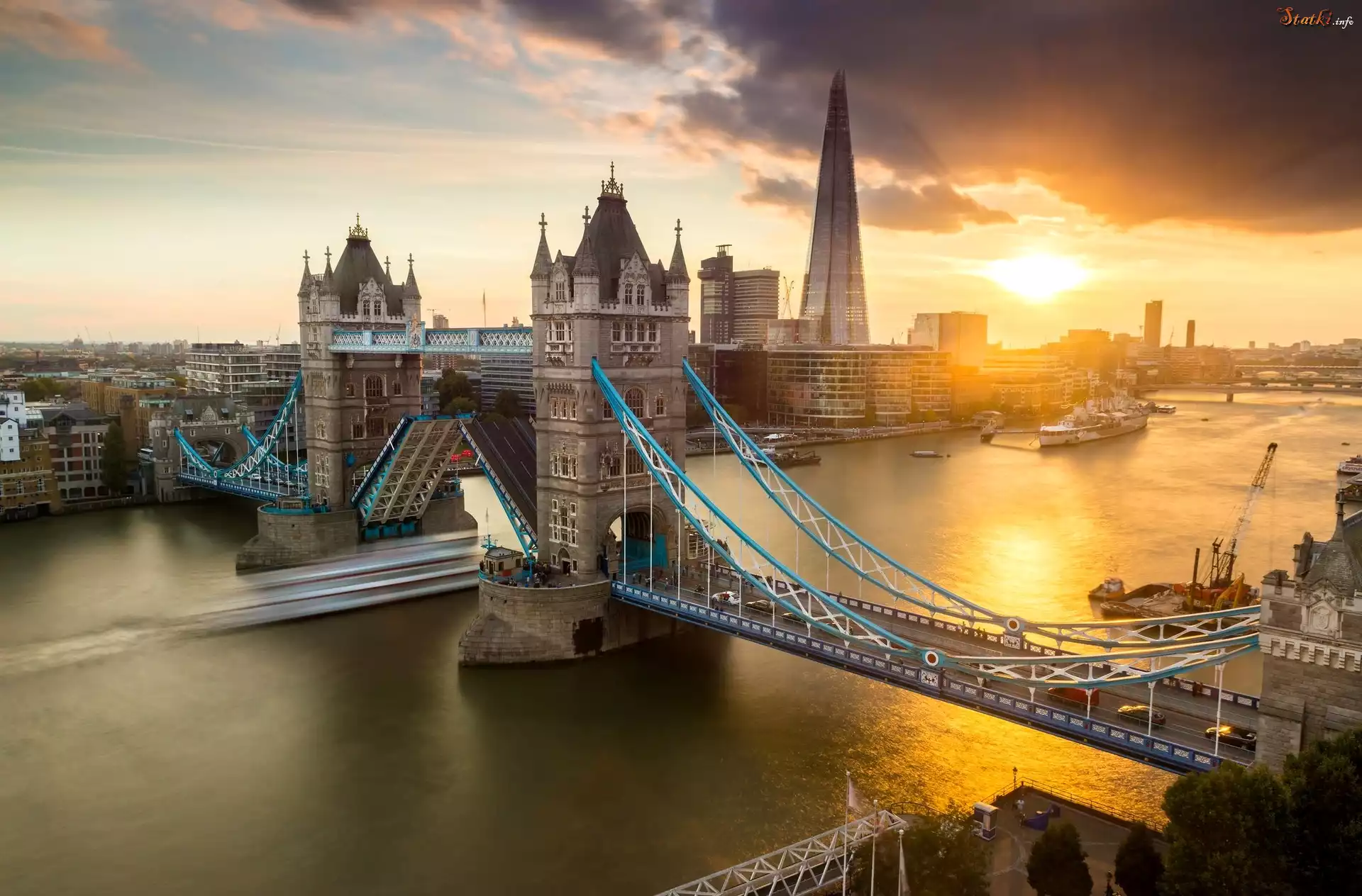 Statek Rzeka, Most, Statki, Wschód, Słońca, Tower Bridge