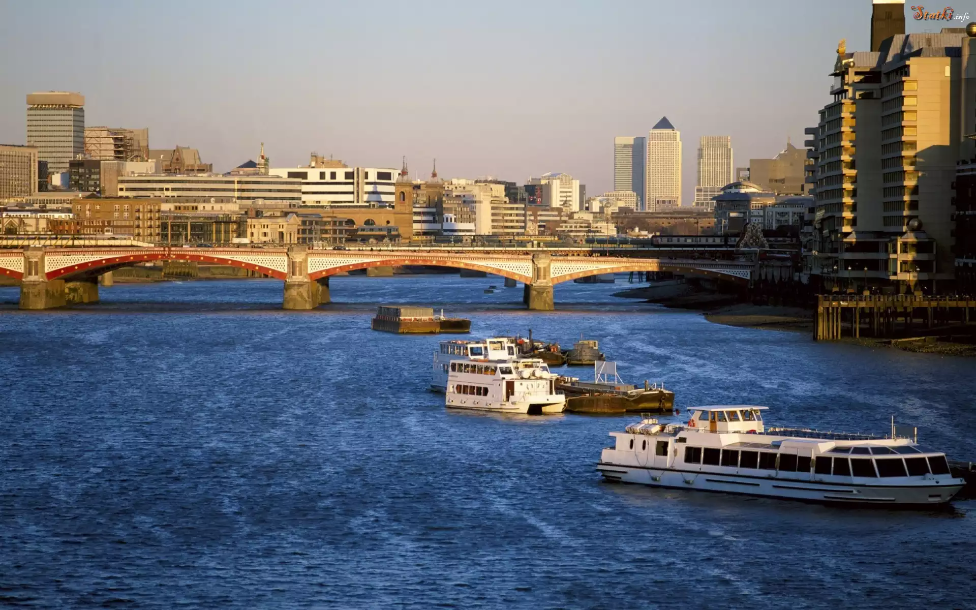 Rzeka, Most, Statki, Rzeczne, Barki, Panorama, Miasta
