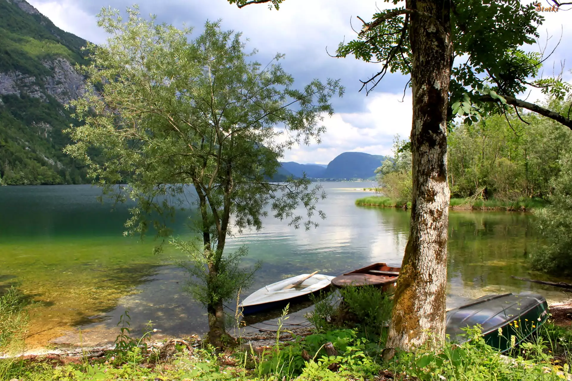 Park, Narodowy, Triglav, Góry, Jezioro, Bohinj, Łódki, Drzewa