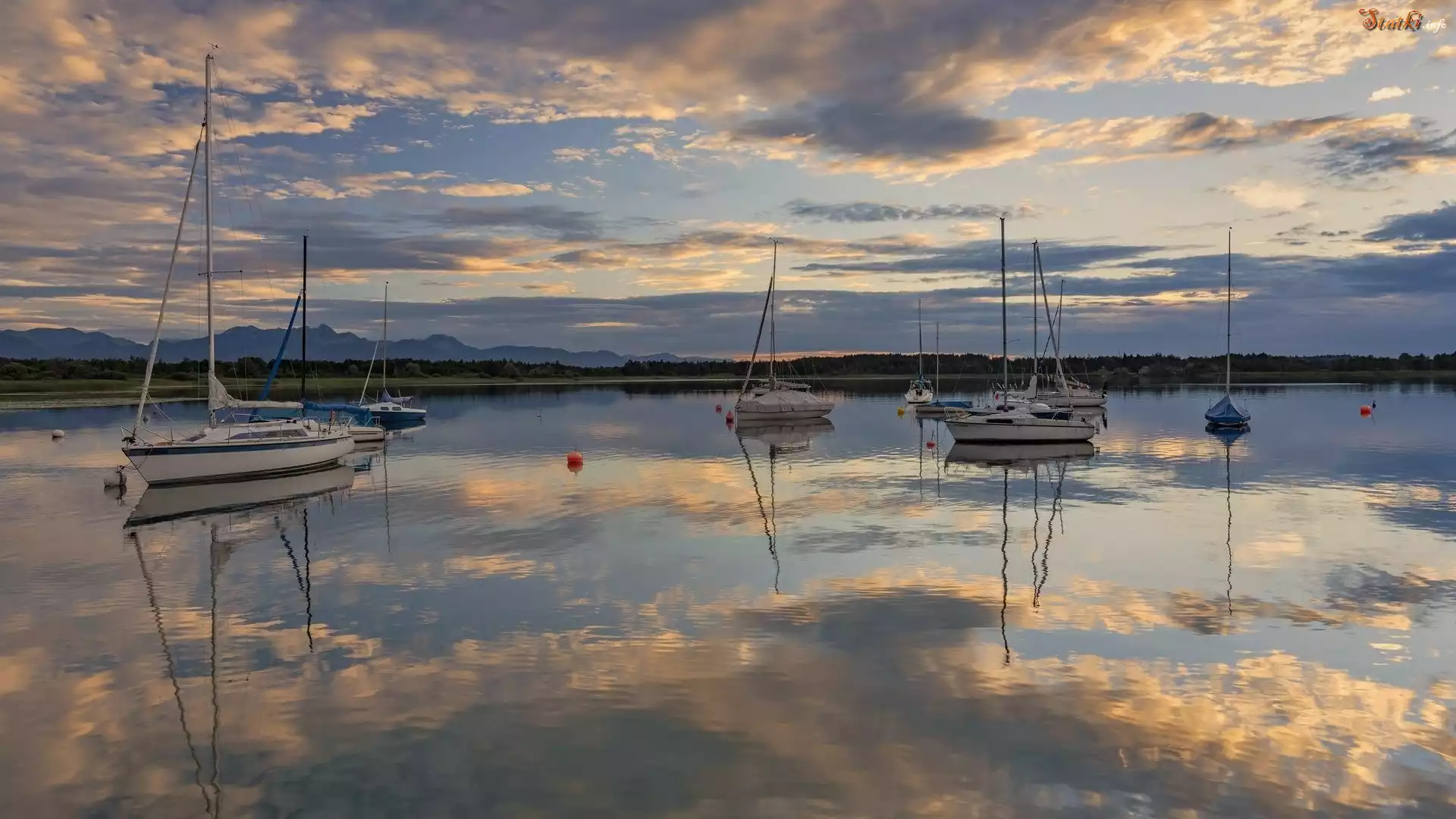 Jezioro, Simsee, Statki, Żaglówki, Niebo, Odbicie, Bawaria, Niemcy