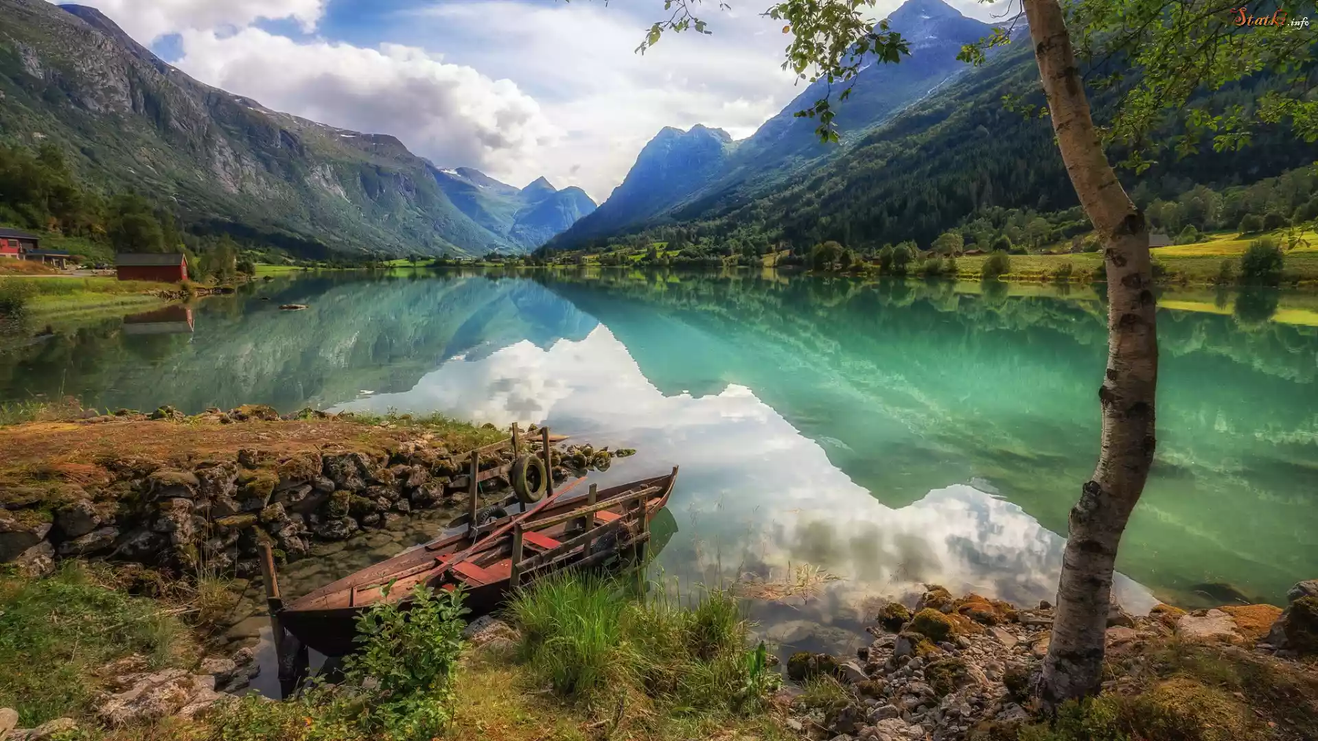 Statek Łódka, Brzeg, Fiord Sognefjorden, Okręg Sogn og Fjordane, Norwegia