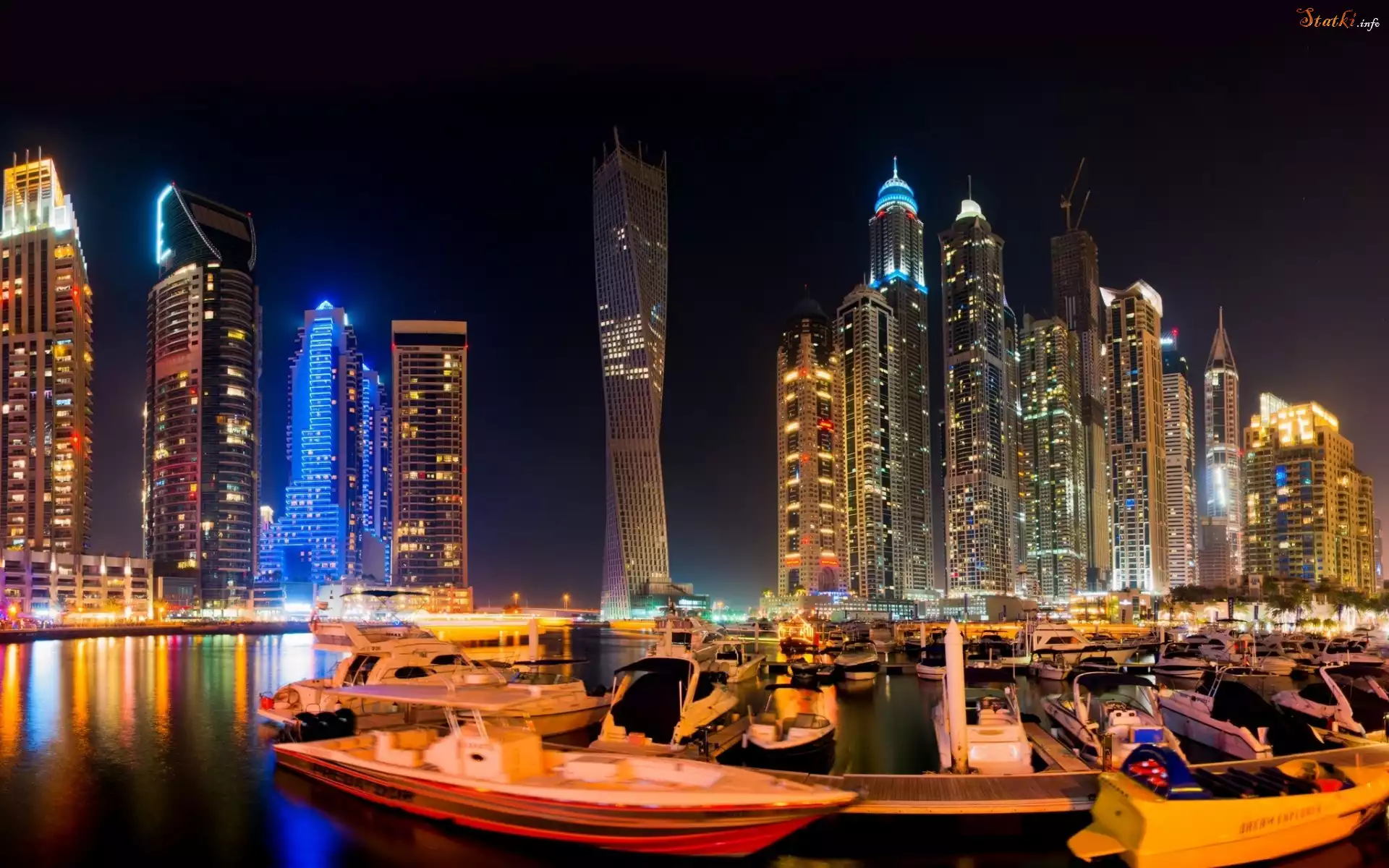 Statek Łódki, Jachty, Drapacze, Chmur, Zmierzch, Dubaj