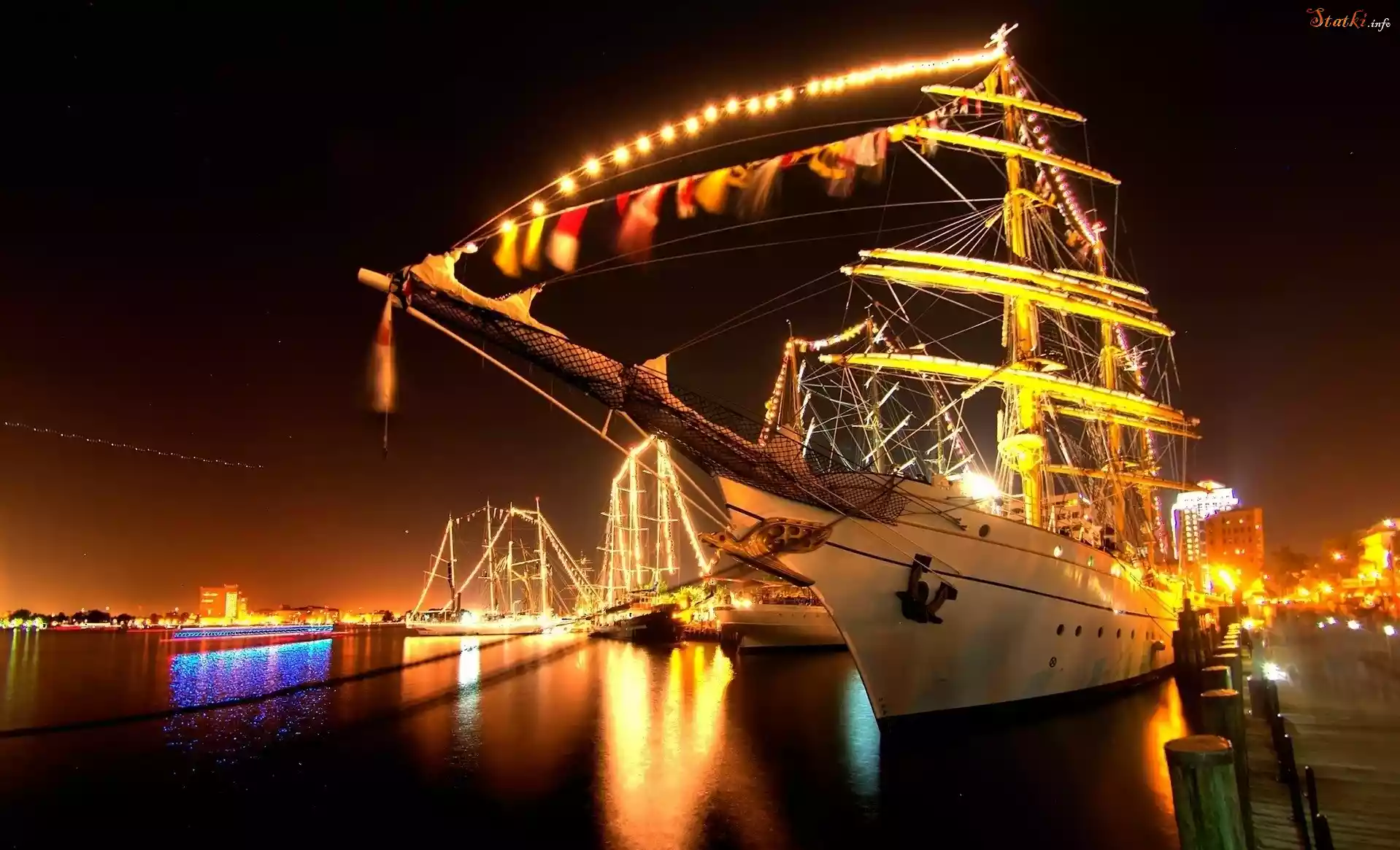 Statek Oświetlony, Żaglowiec, Woda, Maszty